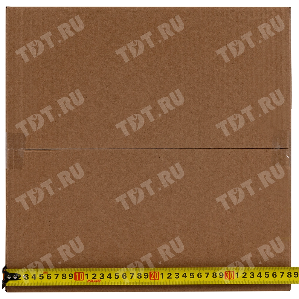 Картонный короб для переезда №1 (малый) длиной 380 мм, шириной 380 мм и высотой 260 мм. Изготовлен из трехслойного картона марки Т-23 В. Полезный объём — 37.54 л.