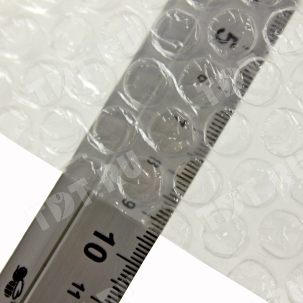 Прозрачная двухслойная воздушно-пузырчатая пленка «Стандарт», намоткой 10 м, шириной рулона 1.2 м, диаметром пузырька 10 мм, диаметром рулона 0.17 м, плотностью 55 г/м². Изготовлена из полиэтилена. Производится в России.