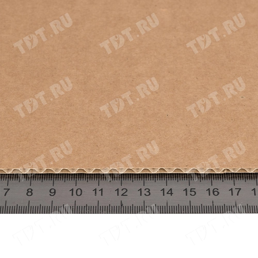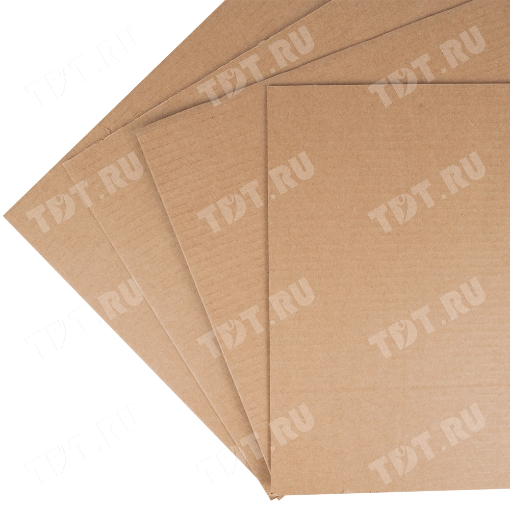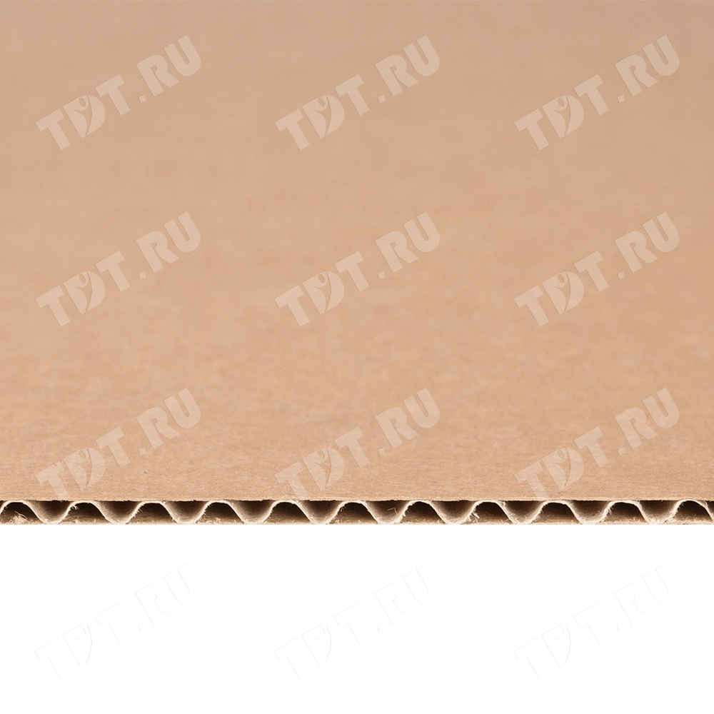 Трехслойный лист гофрокартона, бурого цвета, марки Т-24 В, длиной 1200 мм, шириной 800 мм, толщиной 2.5-3.2 мм, площадью 0.96 м², направление волны вдоль стороны 1200 мм. Для производства листов используется только первичное высококачественное сырье, плотность плоских листов – 160 г/м², плотность гофры – 140 гр./м². Производится в России.
