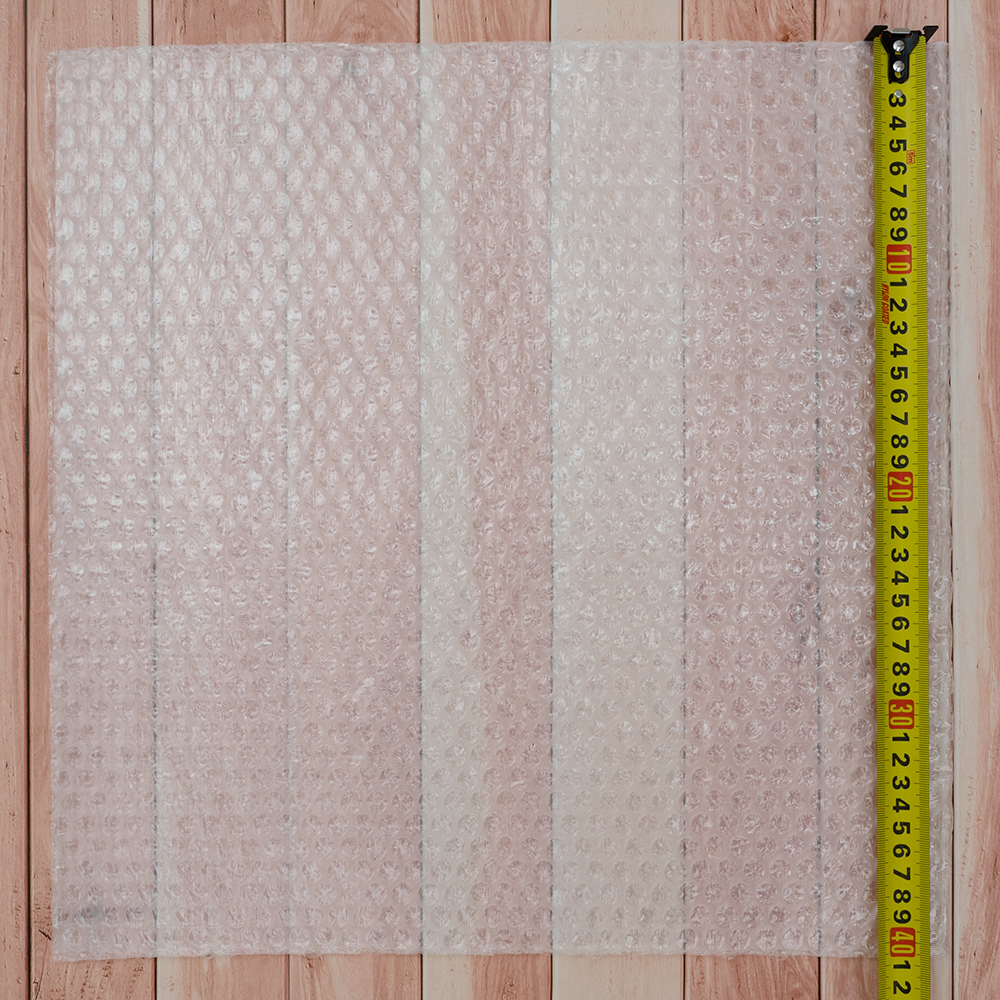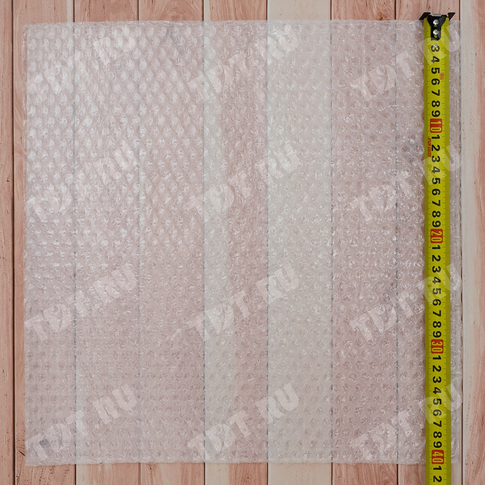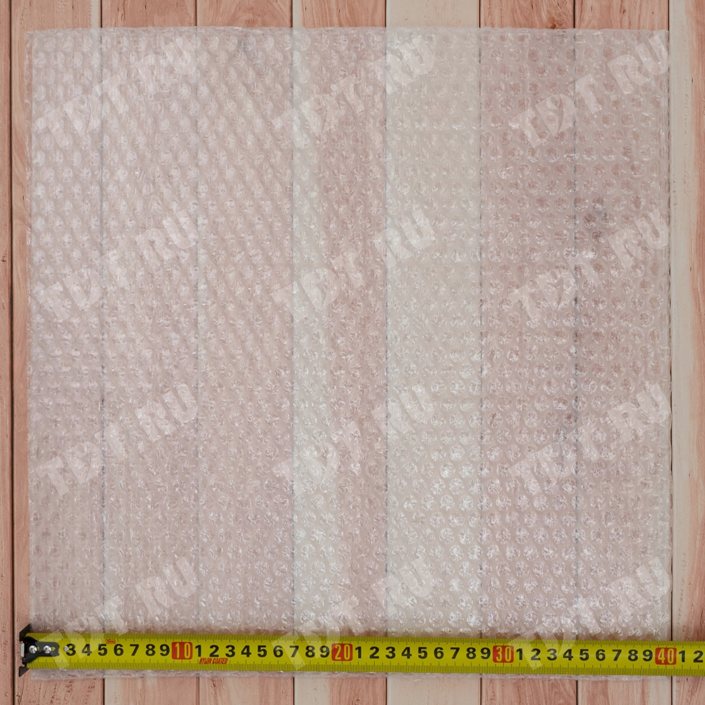 Прозрачный квадратный трехслойный воздушно-пузырчатый пакет Бета-Куверт, длиной 40 см, шириной 40 см, диаметром пузырька 10 мм, плотностью 60 г/м². Изготовлен из полиэтилена. Производится в России.