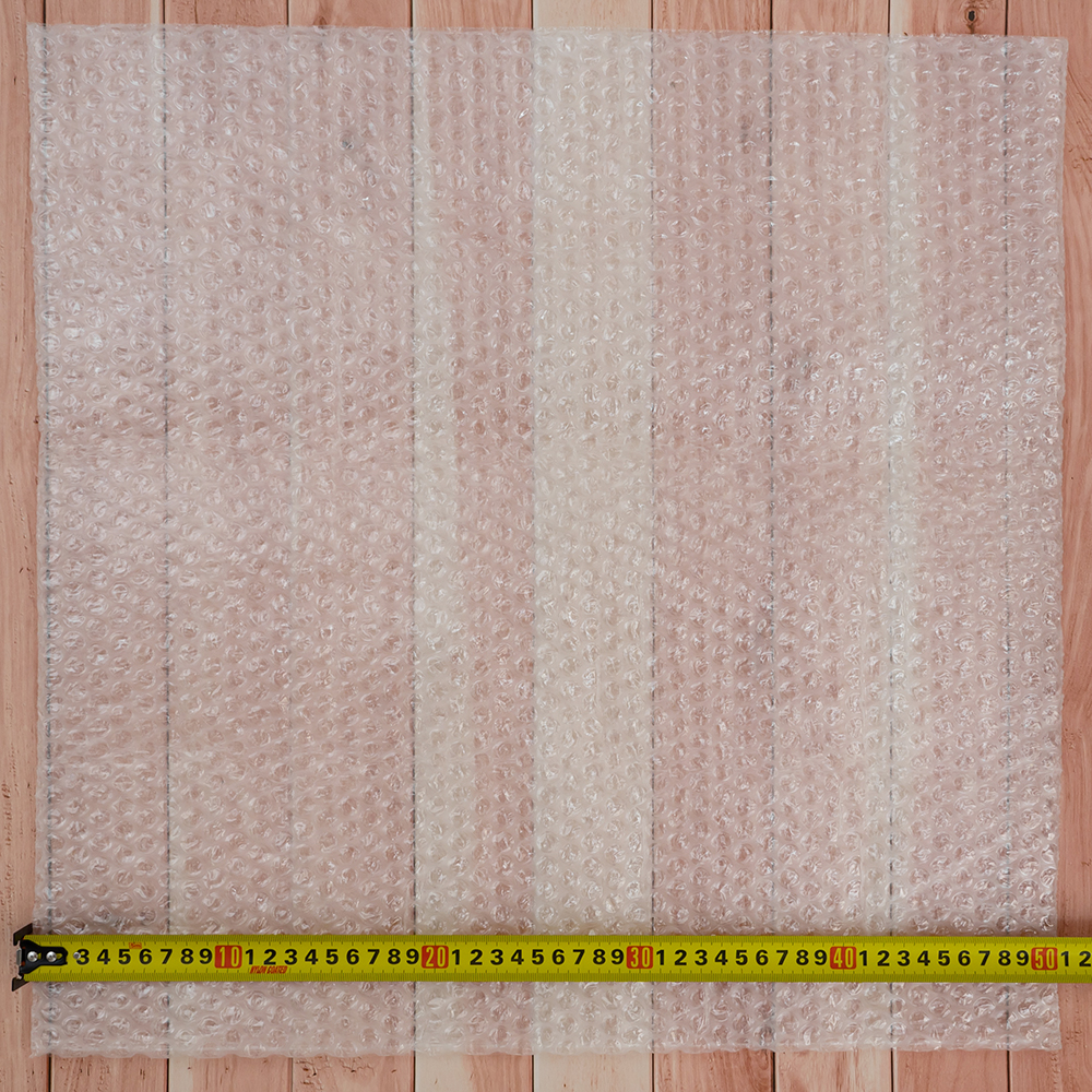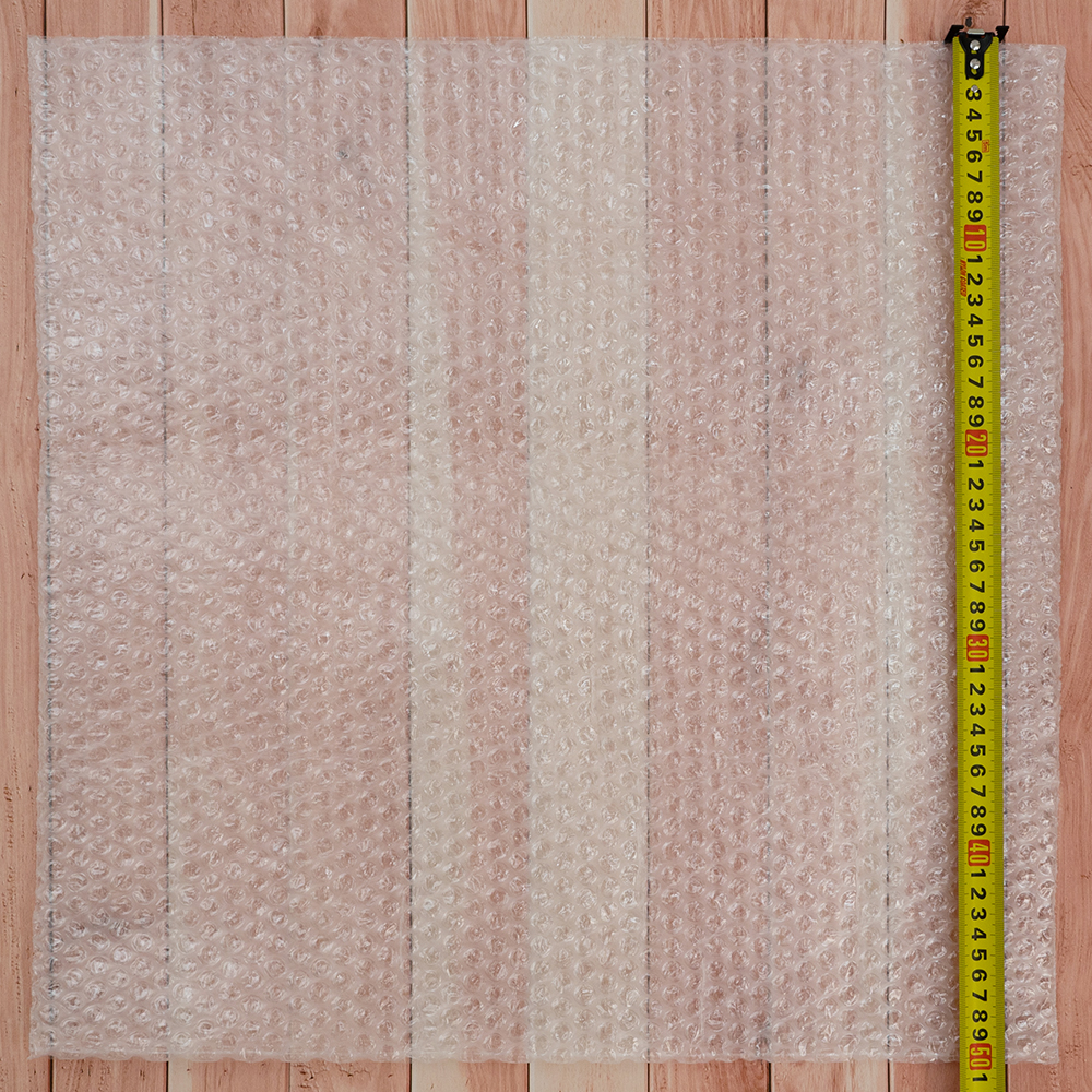 Прозрачный квадратный трехслойный воздушно-пузырчатый пакет Бета-Куверт, длиной 50 см, шириной 50 см, диаметром пузырька 10 мм, плотностью 60 г/м². Изготовлен из полиэтилена. Производится в России.