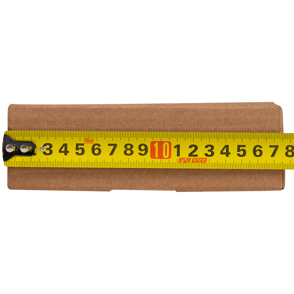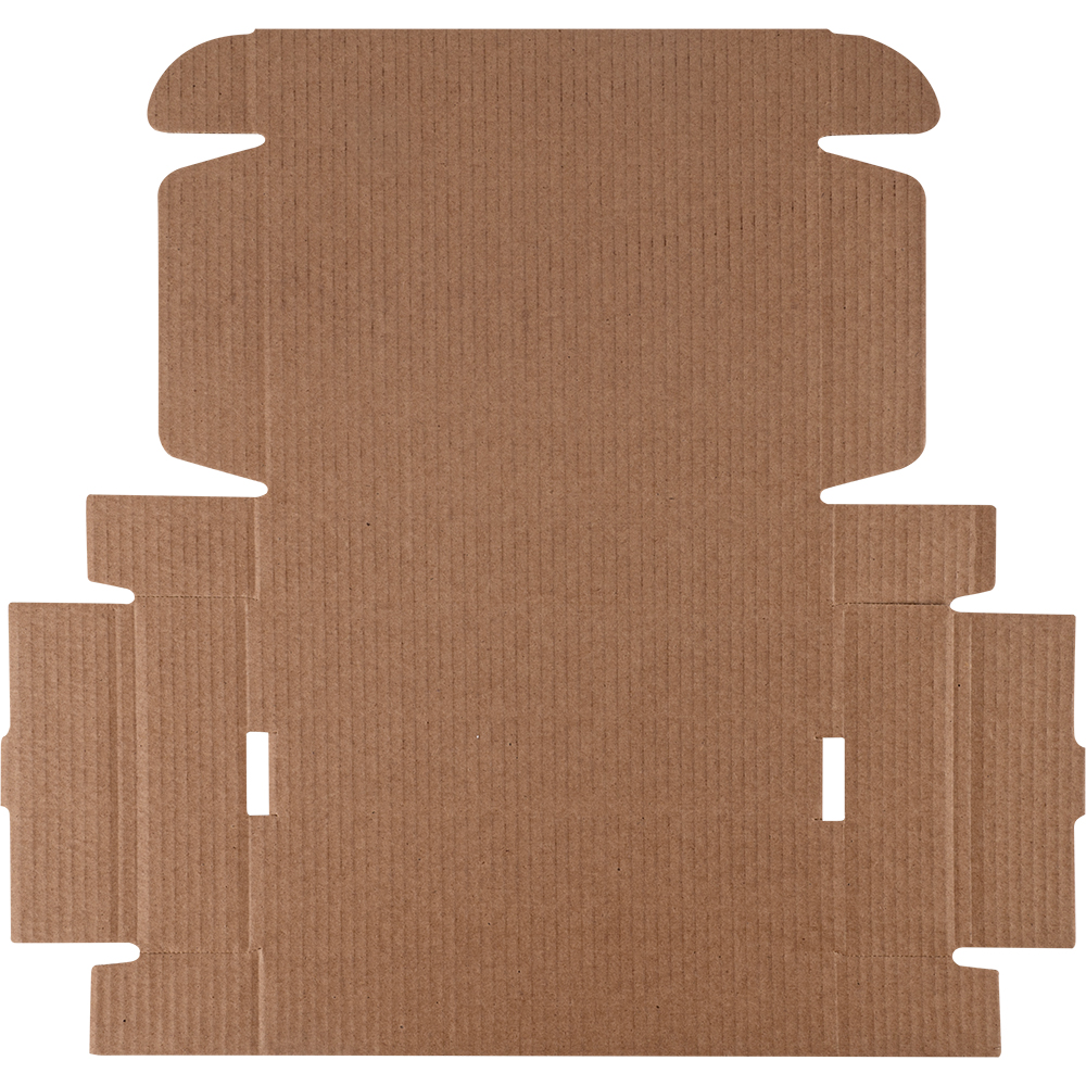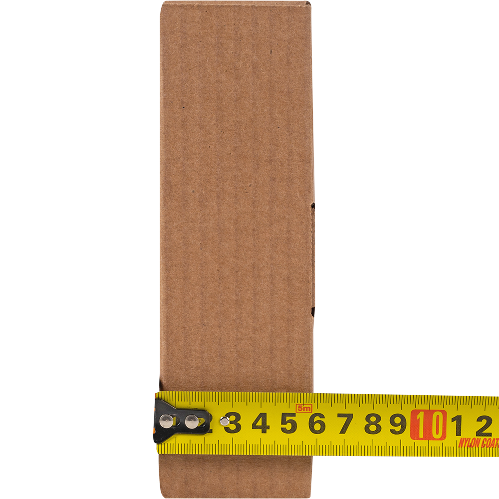 Почтовый короб тип «Е» бурого цвета, длиной 270 мм, шириной 165 мм и высотой 50 мм. Изготовлен из трёхслойного гофрокартона Т-23 В. Полезный объём — 2.23 л.