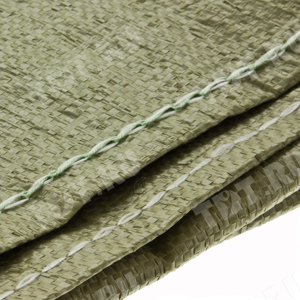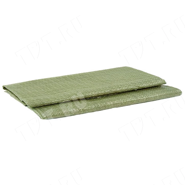 Полипропиленовый мешок, зеленого цвета, длиной 105 см, шириной 55 см, весом 54 г. Материал – полипропилен (ПП). Производится в России.