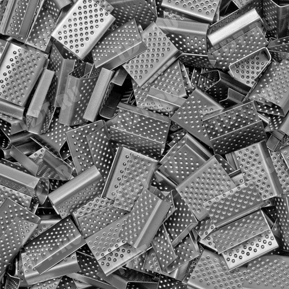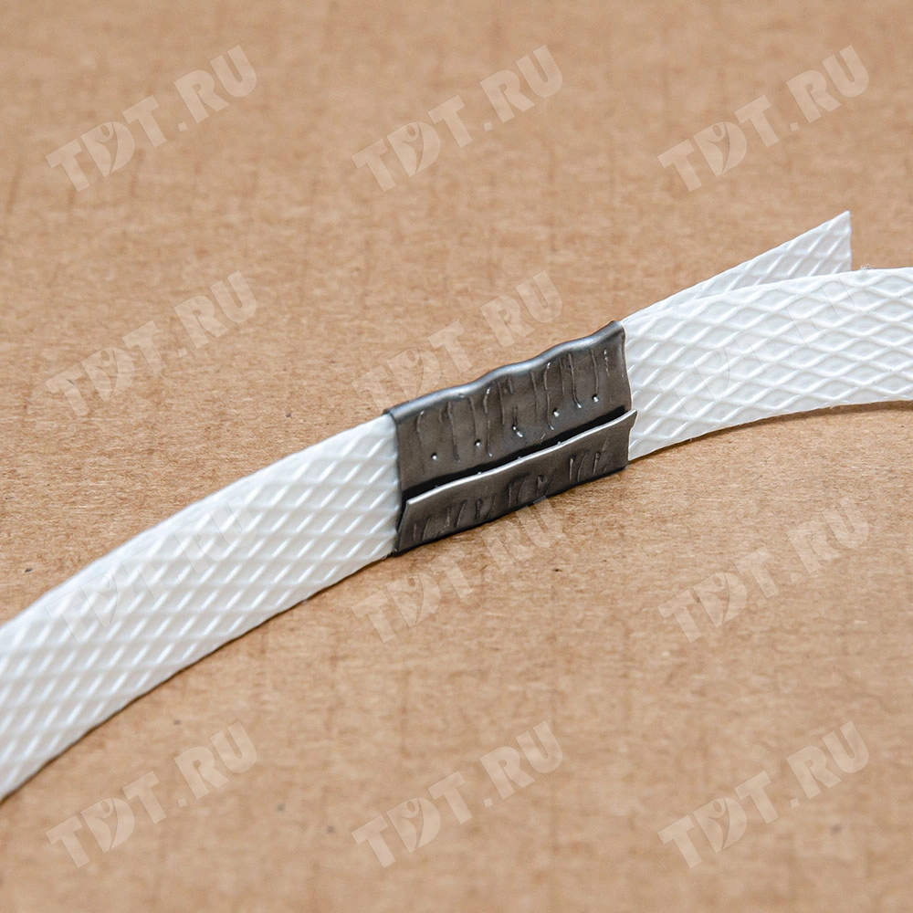Металлические оцинкованные скобы для полипропиленовых лент (ПП), шириной 16 мм, толщиной 0.5 мм, в упаковке по 1000 шт, весом 3.5 кг, транспортировочным объемом 0.006 м³. Скобы подходят для лент шириной 15 мм. Производятся в России.