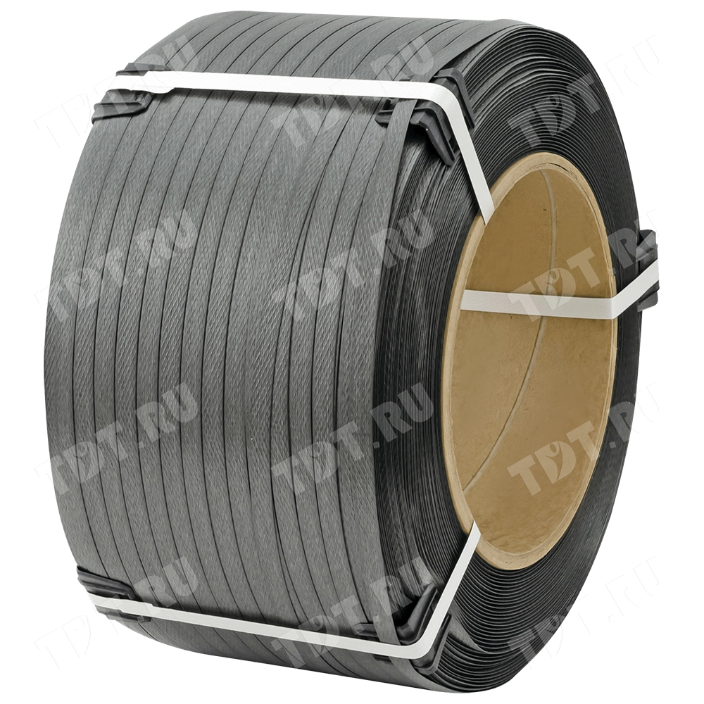 Упаковочная полипропиленовая лента (ПП) Лентапром, серого цвета, намоткой 3000 м, шириной 12 мм, толщиной 0,6 мм, усилием на разрыв 130 кГс, весом 11 кг, транспортировочным объемом 0.033416 м³. Диапазон рабочих температур от -30 до +60°C. Производится в России.