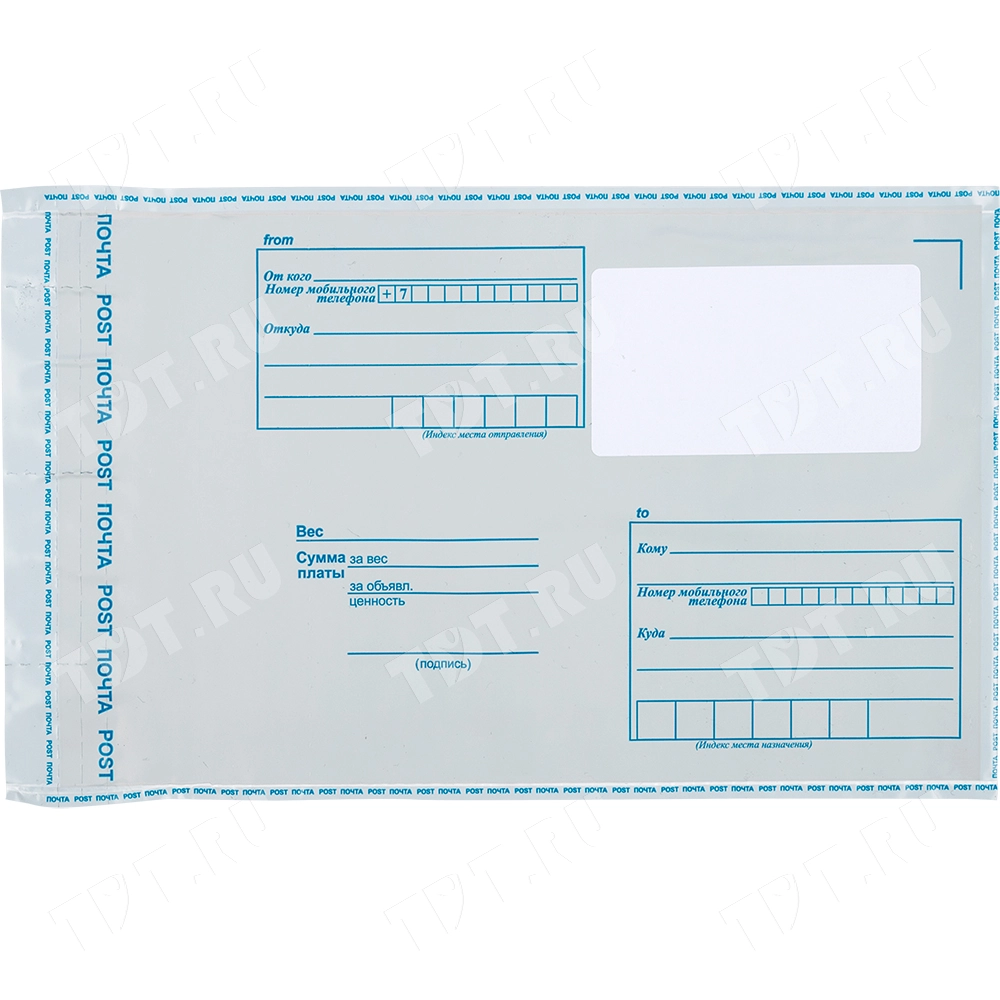 Удобный пластиковый пакет самого маленького размера. Его принимают во всех почтовых отделениях страны.