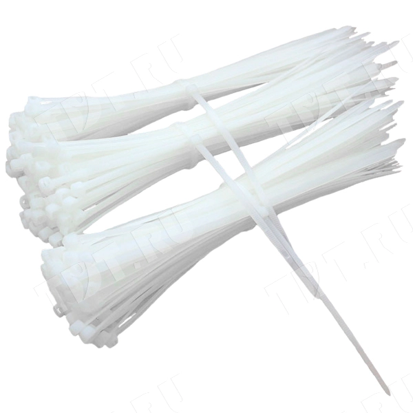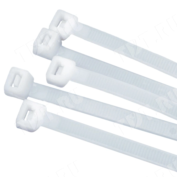Длинные нейлоновые кабельные стяжки (хомуты) Fortisflex КСС, белого цвета, длиной 500 мм, шириной 5 мм, в упаковке по 100 штук. Материал – нейлон 6.6. Стяжки имеют замковый механизм одностороннего хода. Производятся в Китае.