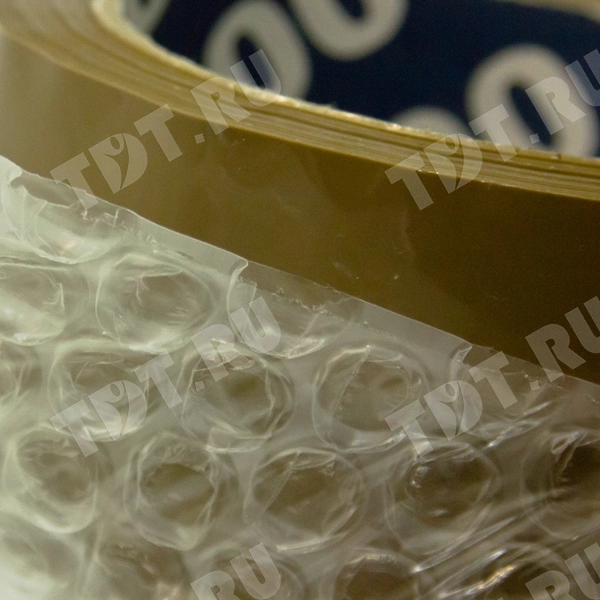 Прозрачная трехслойная воздушно-пузырчатая пленка «Стандарт Плюс», намоткой 100 м, шириной рулона 1.2 м, диаметром пузырька 10 мм, плотностью 60 г/м². Изготовлена из полиэтилена. Производится в России.