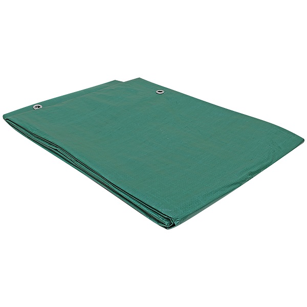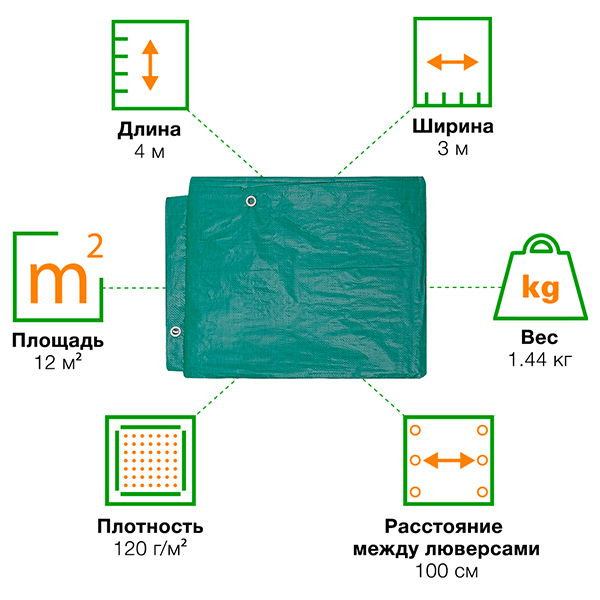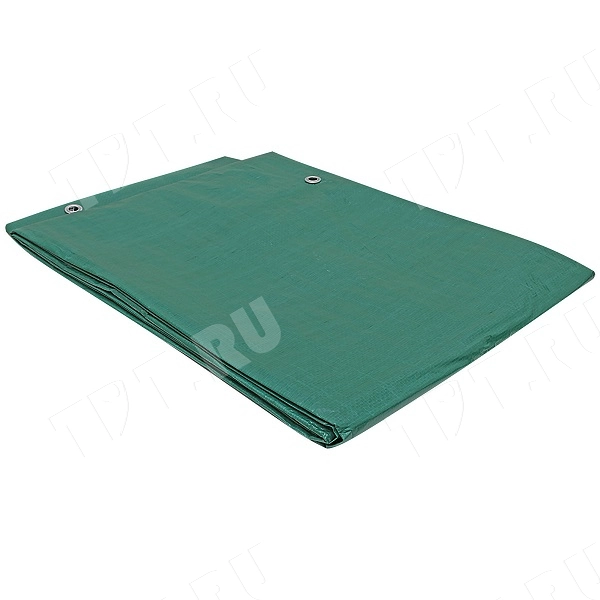 Зеленый универсальный защитный тент «Тарпаулин®» с люверсами из особо прочной полиэтиленовой ткани длиной 4 м, шириной 3 м, площадью 12 м², плотностью 120 г/м². Производится в России.