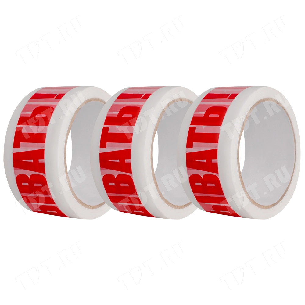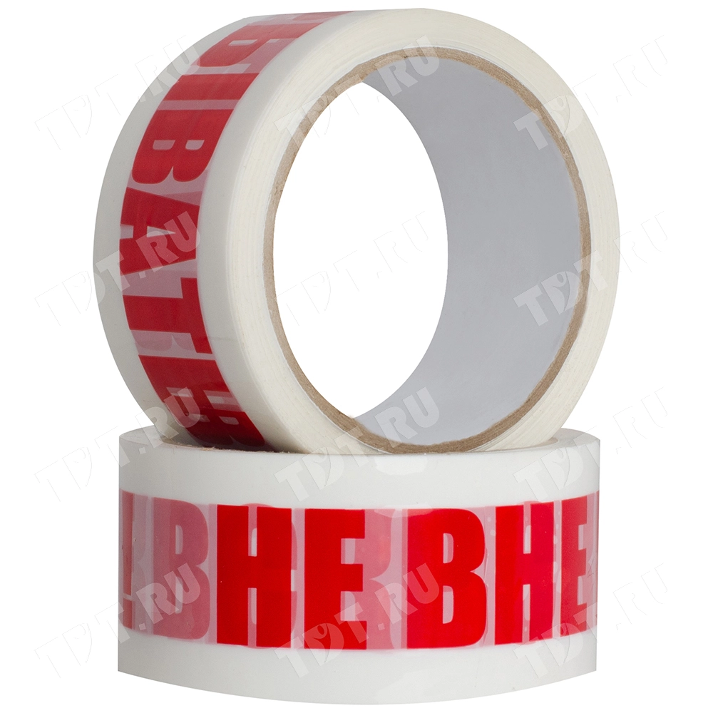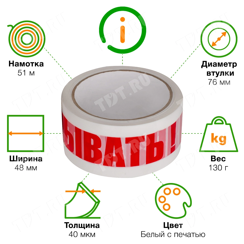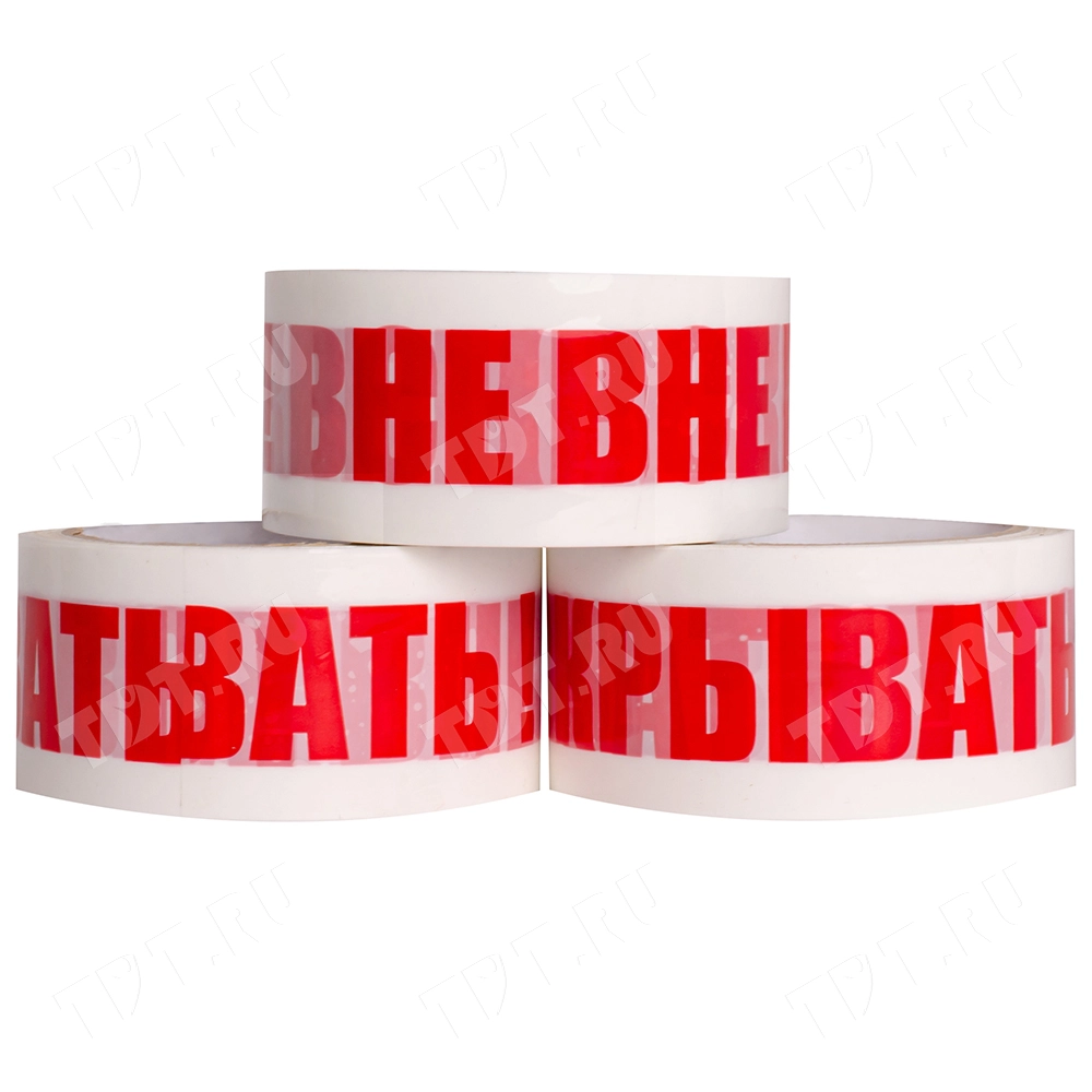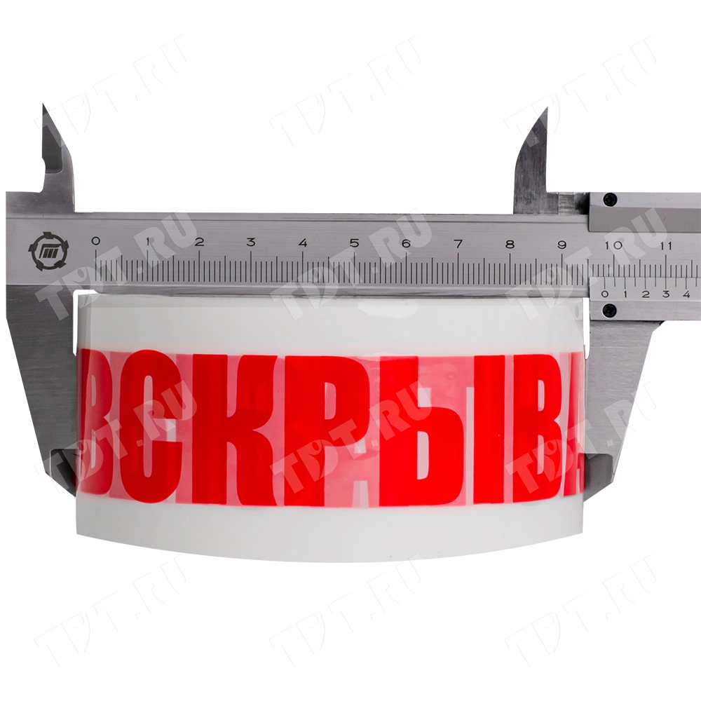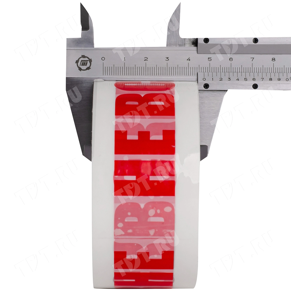 Ширина рулона клейкой ленты с печатью «Не вскрывать» - 48 мм, а толщина ленты - 40 мкм.