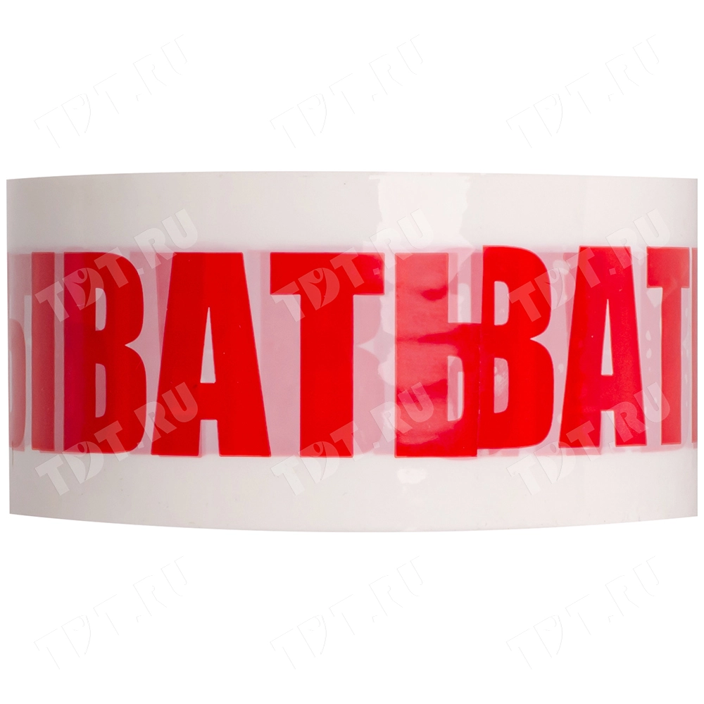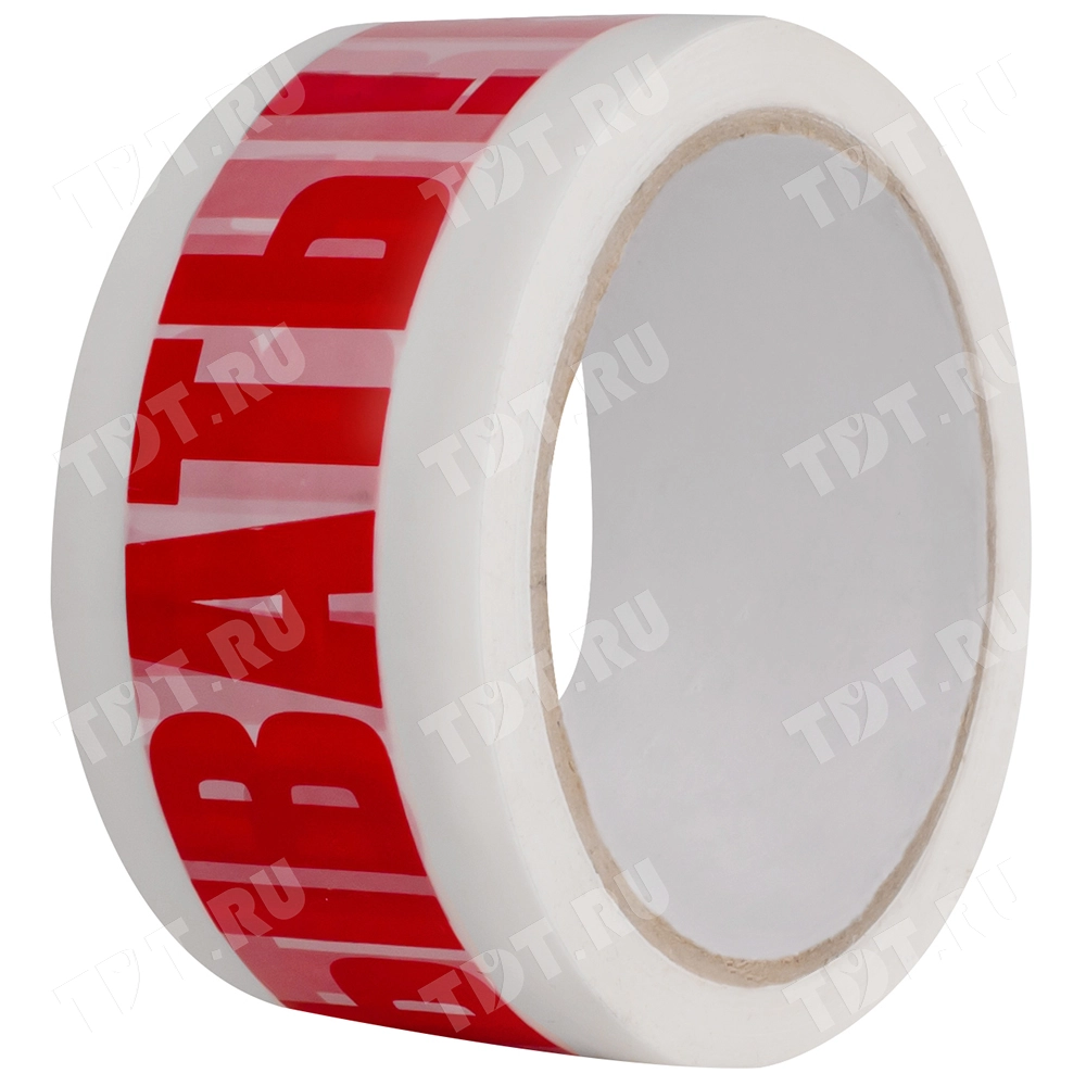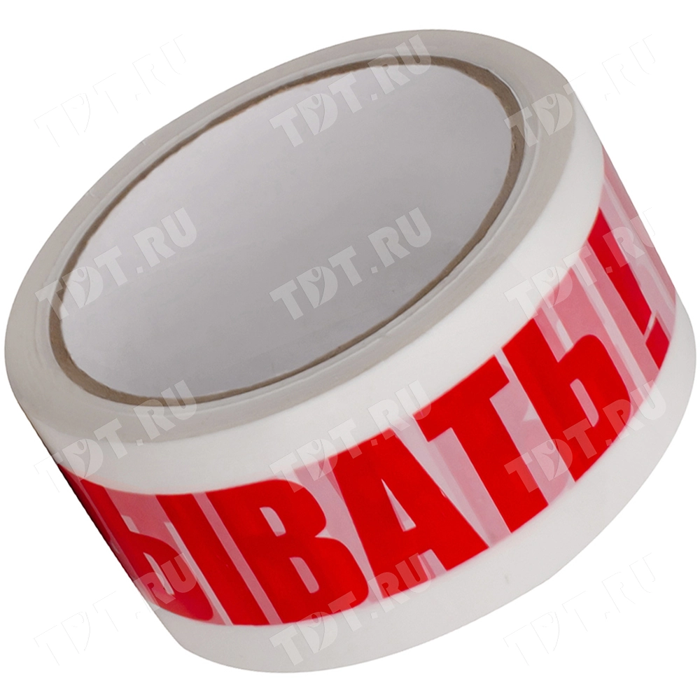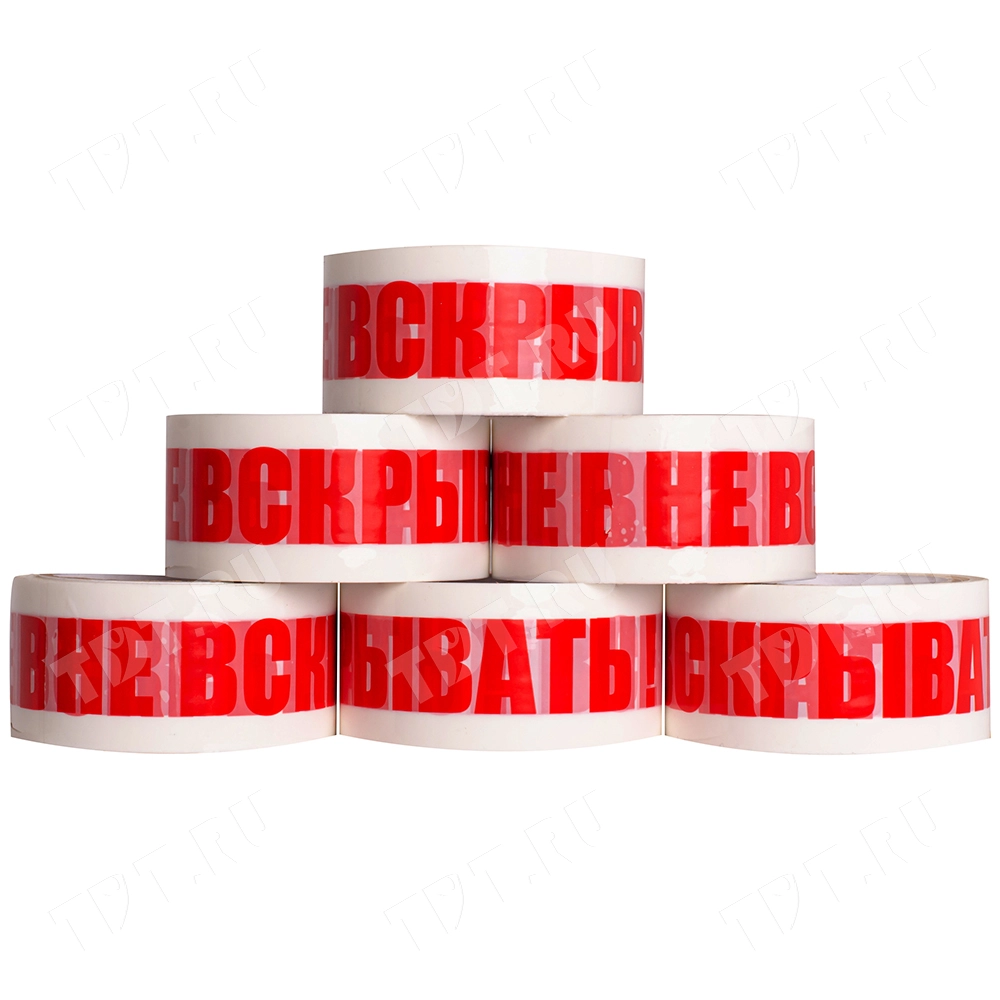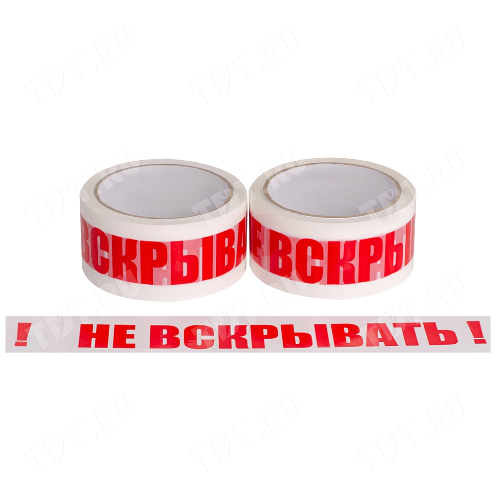 Белая клейкая лента с красной надписью «Не вскрывать!» шириной 48 мм, диаметром втулки 76 мм, намоткой 51 метр. Изготовлена на основе полипропилена.