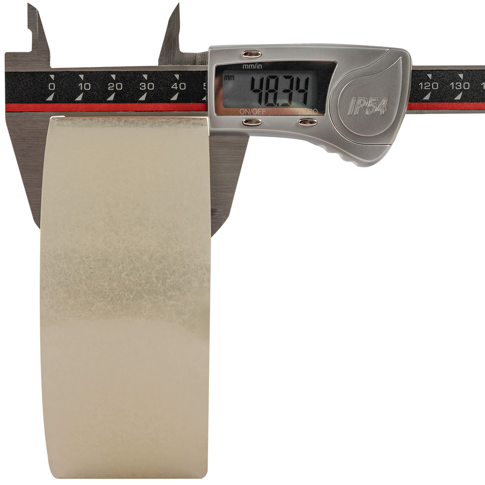 Диаметр втулки данной клейкой ленты - 76 мм, а ширина - 48 мм, поэтому она подойдёт для работы с диспенсером шириной 50 мм.