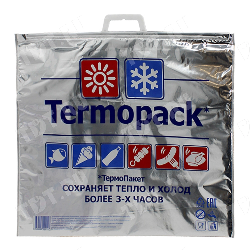 Термопакет Биг Премиум Терпак для упаковки продуктов с усиленной клипсой-защелкой, шириной 600 мм, высотой 550 мм, объемом 33 л, грузоподъемностью до 20 кг. Многоразовый термопакет сохраняет холод до 6 часов. Производится в России.