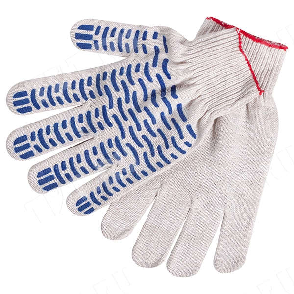 Рабочие хлопчатобумажные перчатки Стандарт с ПВХ волной синего цвета. Защищают руки от повреждений и загрязнений. Производятся в России.