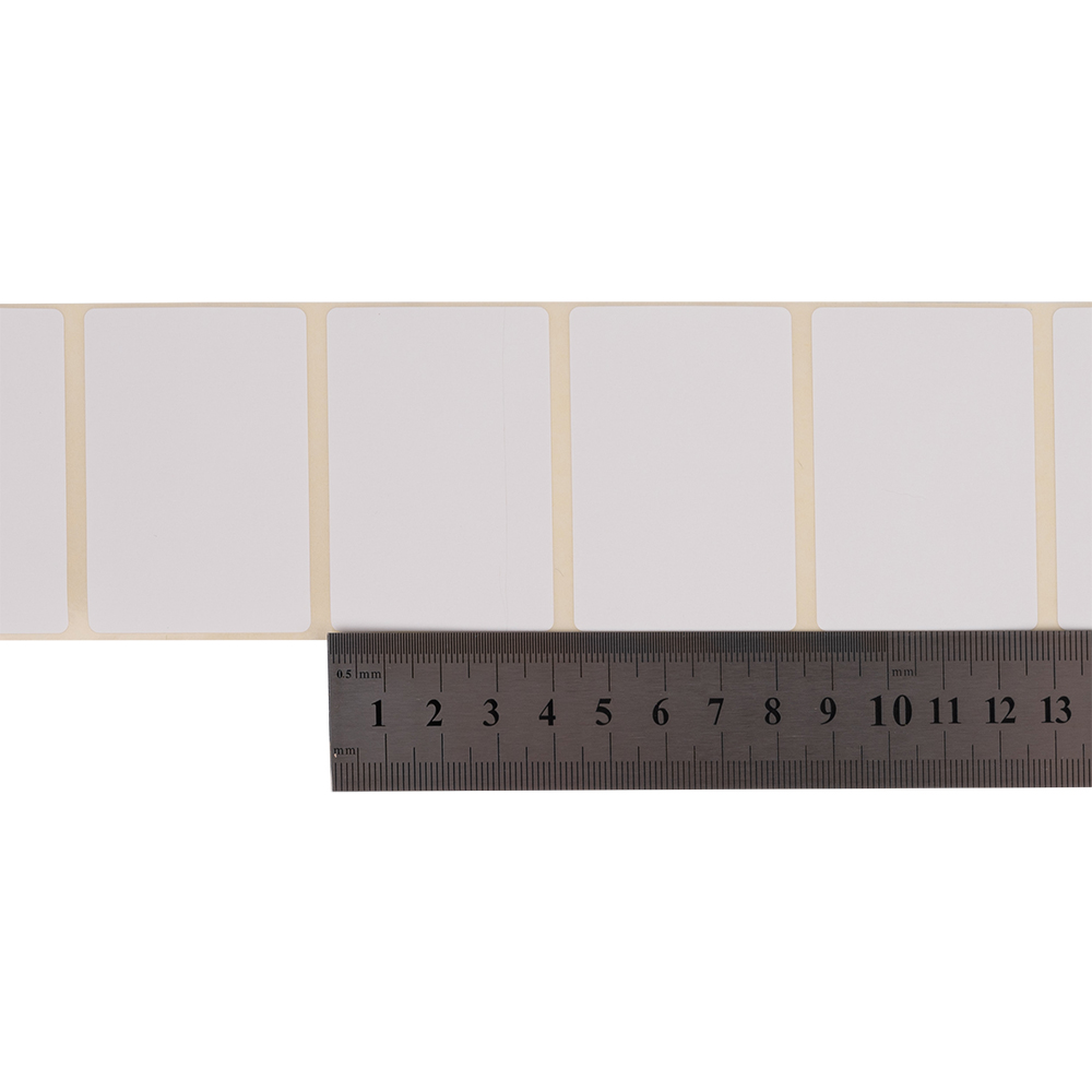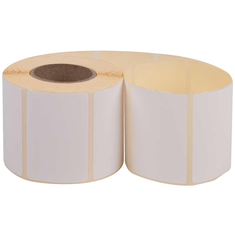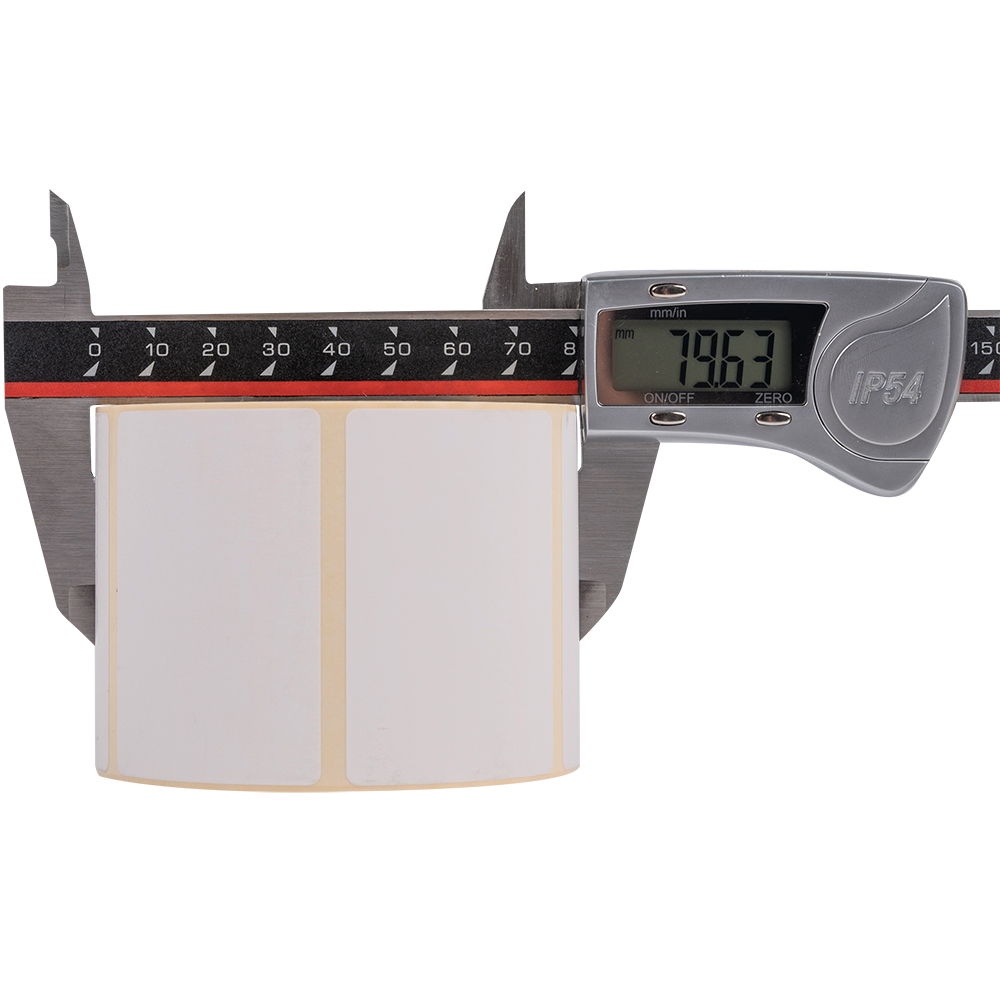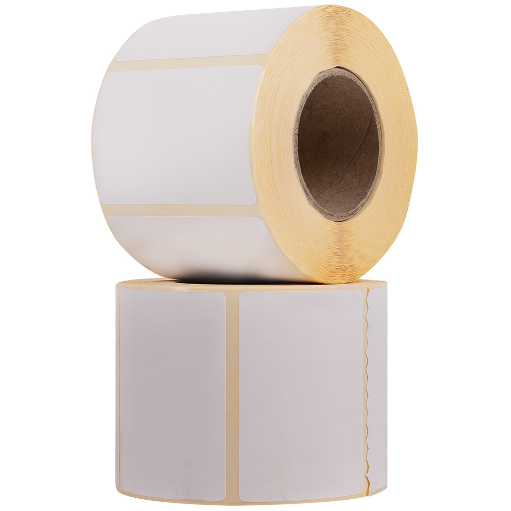 Самоклеящиеся этикетки ЭКО из матовой бумаги белого цвета, шириной 58 мм, высотой 40 мм, диаметром втулки 40 мм, количеством в рулоне по 700 штук. Производятся в России. Термоэтикетки ЭКО в рулонах предназначены для печати на принтерах без риббона. На этикетках есть специальный слой, который при нагреве термоголовки принтера темнеет, за счет этого происходит печать.