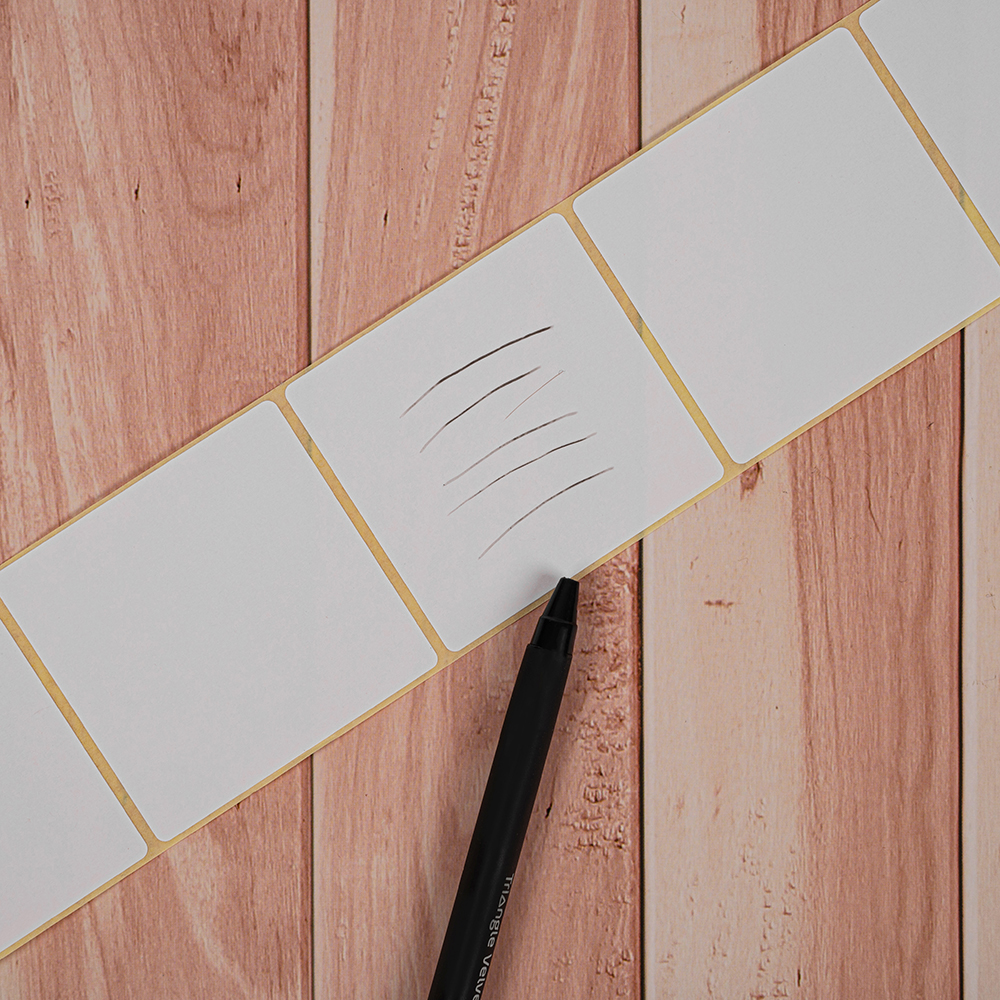При производстве ЭКО этикеток используется белая бумага, которая обработана термочувствительным слоем. Бумажные термоэтикетки ЭКО не имеют защитного покрытия, поэтому в процесс эксплуатации стоит избегать контакта с твердыми предметами.