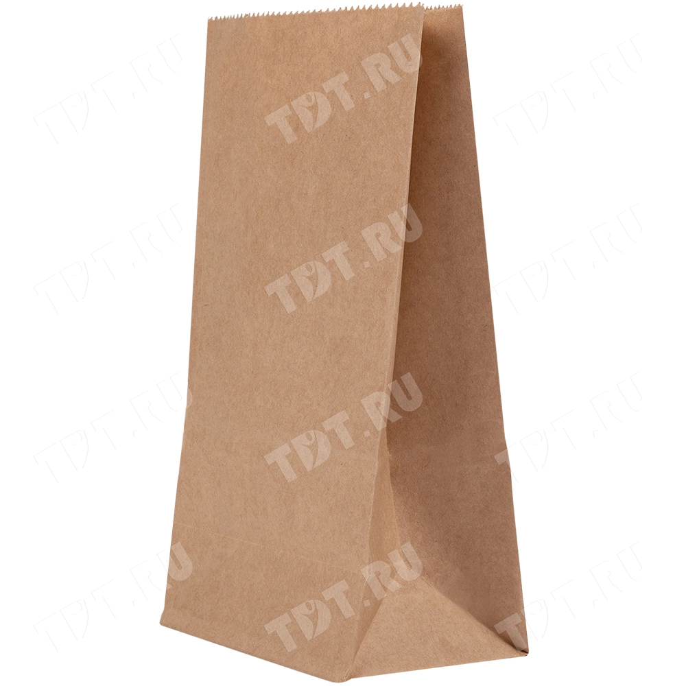 Бумажный крафт пакет с прямоугольным дном без ручек шириной 80 мм, длиной 120 мм, высотой 190 мм. Пакеты производятся в России.