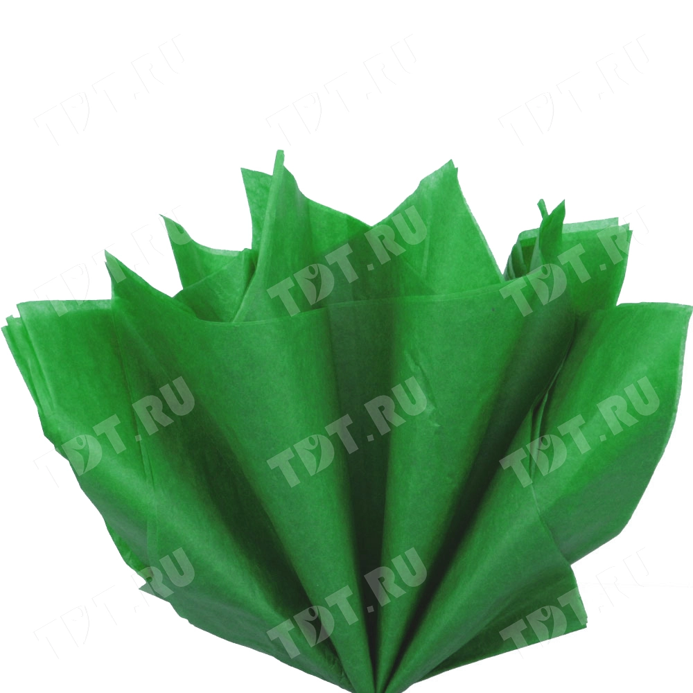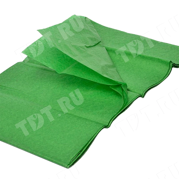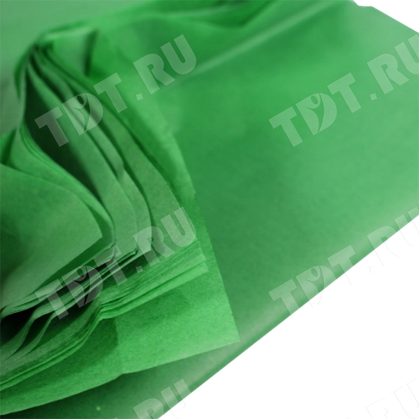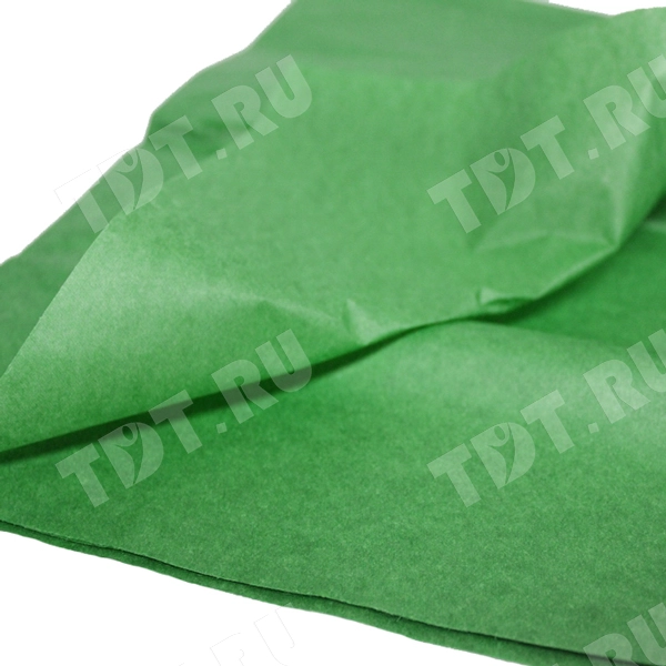 Зелёная бумага тишью шириной 50 см, длиной 66 см, плотностью 20 г/м² по 10 листов в упаковке. Шероховатая упаковочная бумага для оформления и украшения подарков.