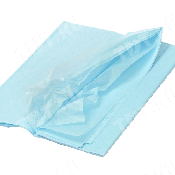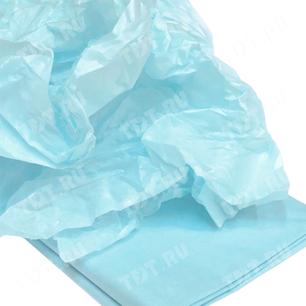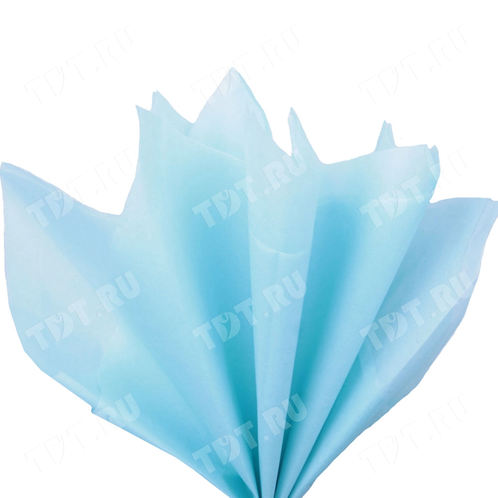 Нежно-голубая бумага тишью шириной 50 см, длиной 66 см, плотностью 20 г/м² по 10 листов в упаковке. Шероховатая упаковочная бумага для оформления и украшения подарков.