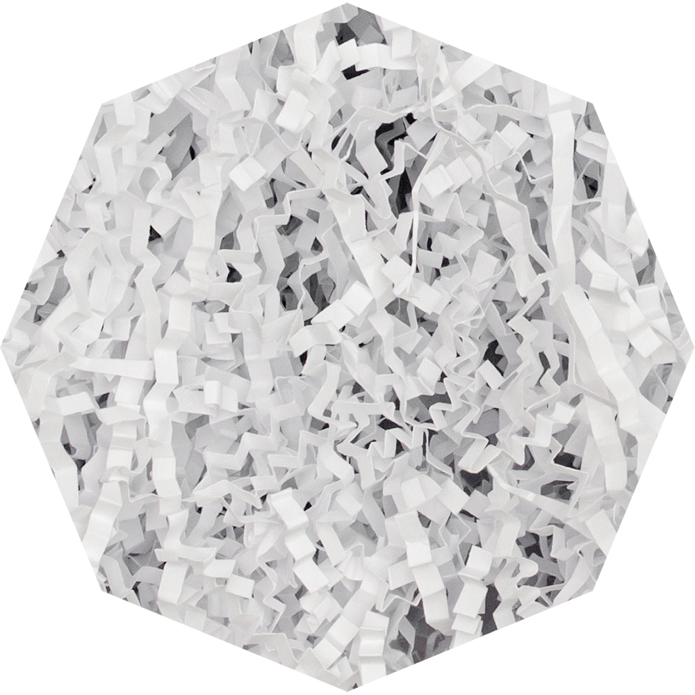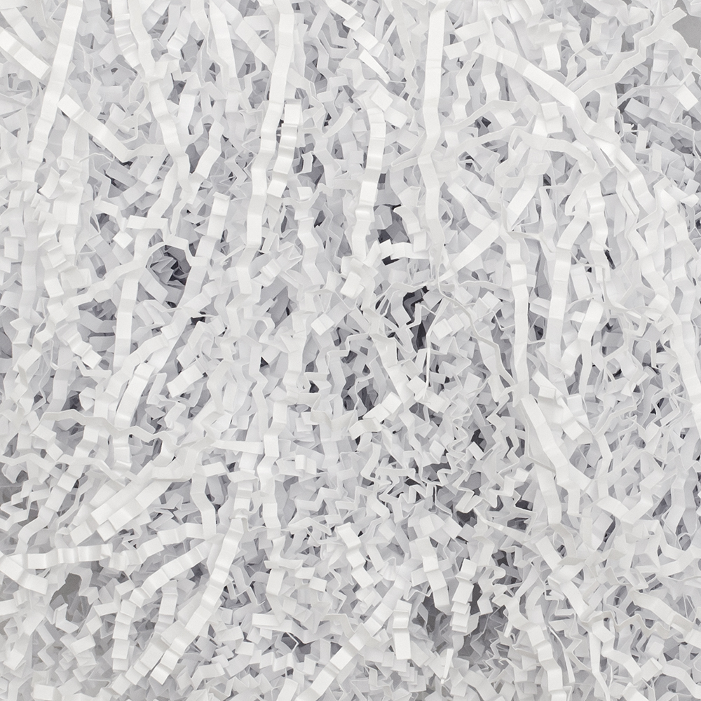 Бумажный подарочный наполнитель «Белый» из простой бумаги, белого цвета, весом 1 кг, плотностью 80 г/м², шириной резки 2-3 мм. Производится в России.