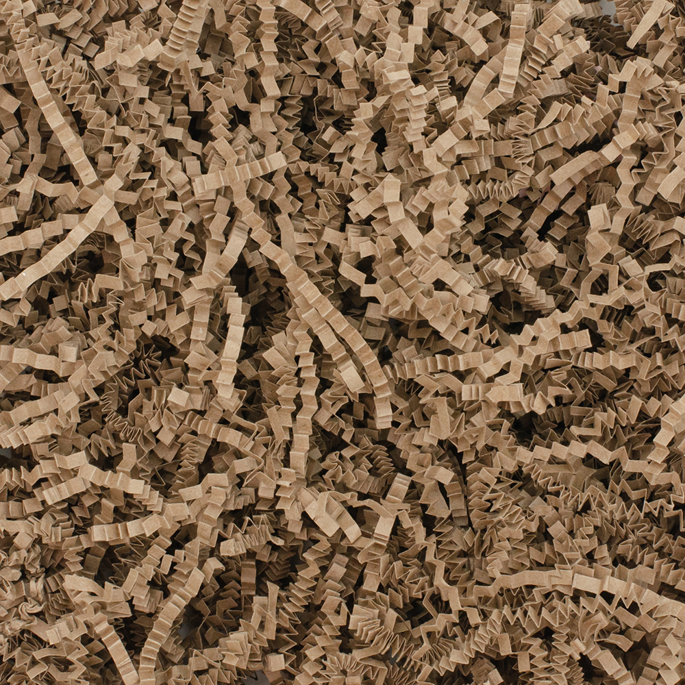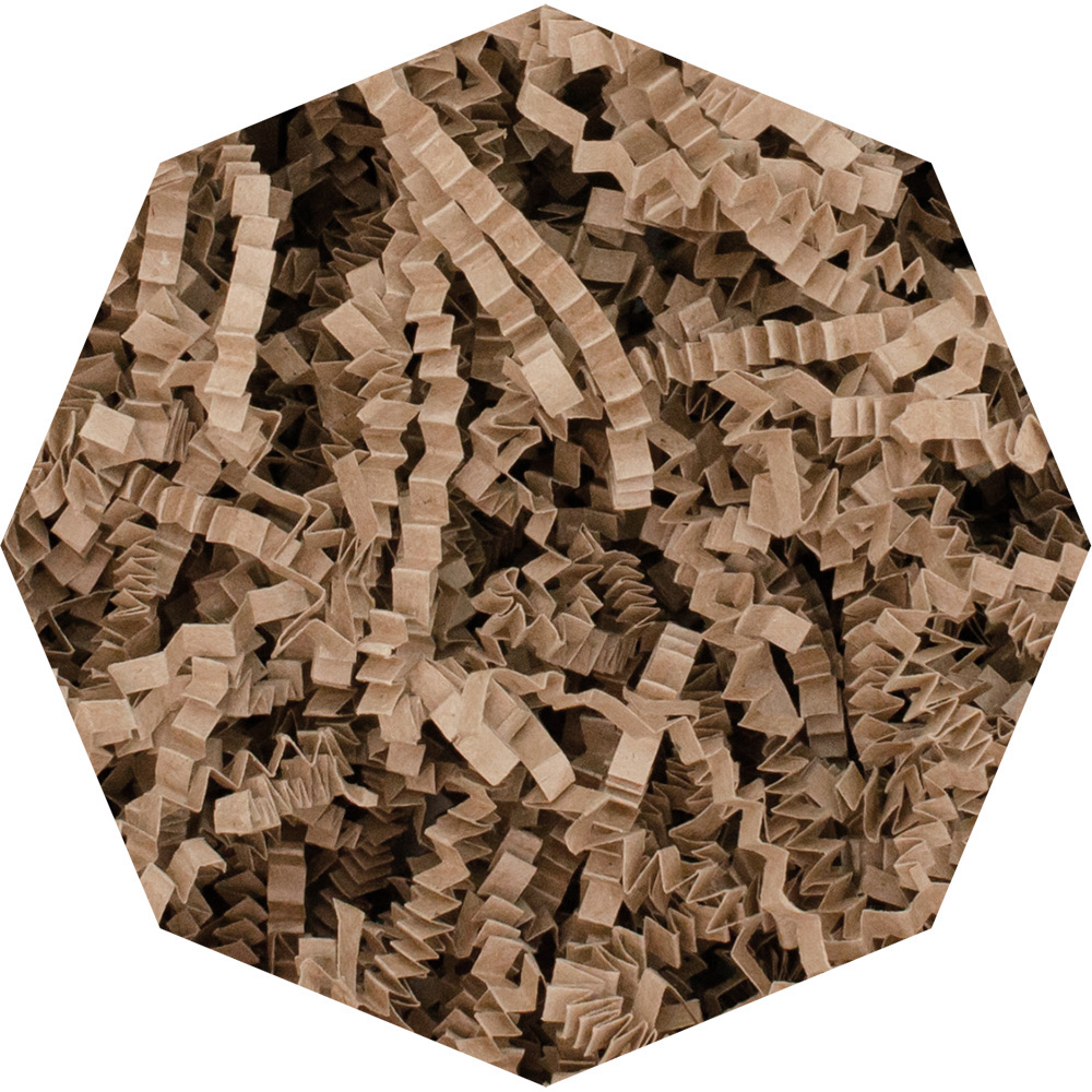 Бумажный подарочный наполнитель «Крафт» из простой бумаги, крафтового цвета, весом 1 кг, плотностью 80 г/м², шириной резки 2-3 мм. Производится в России.