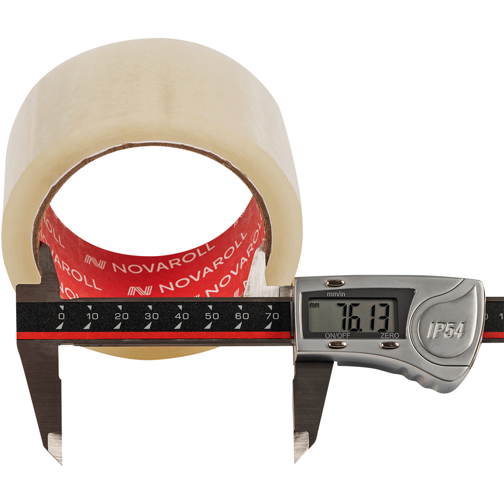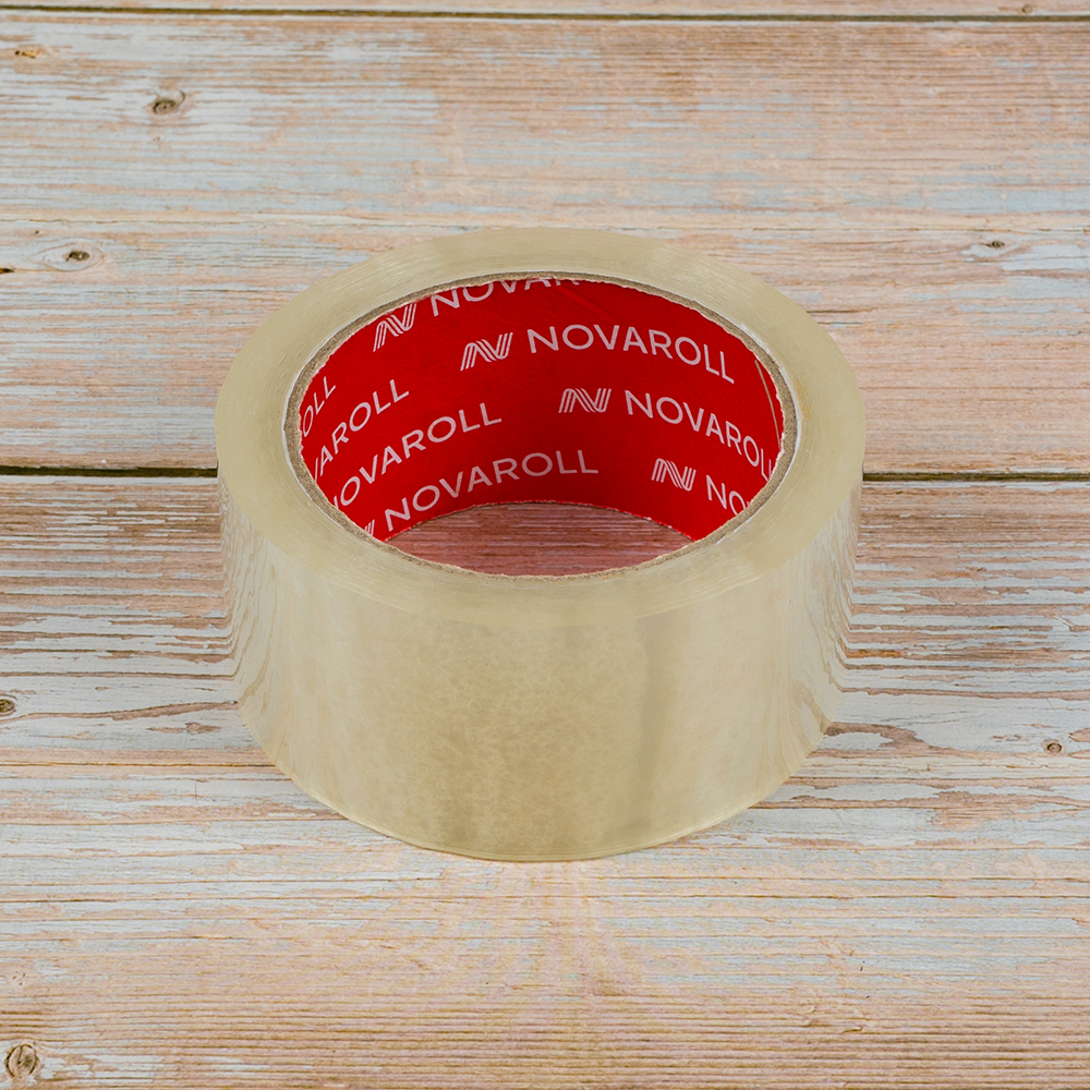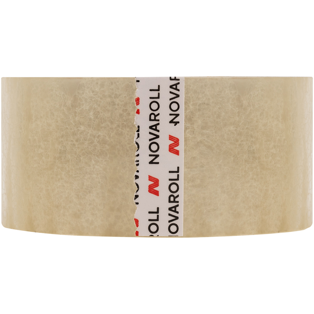 Клейкая лента Nova Roll прозрачная шириной 48 мм, диаметром втулки 76 мм, намоткой 66 метров, толщиной 45 мкм для ручной упаковки.