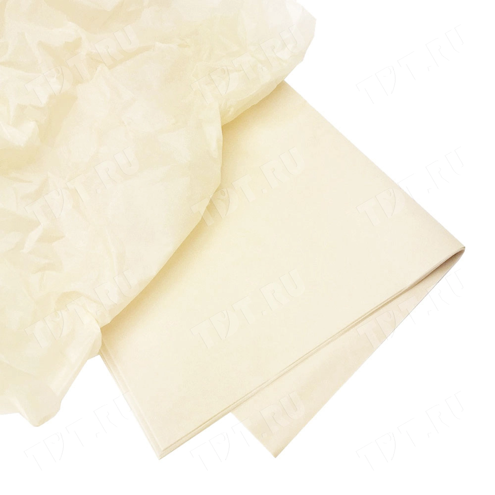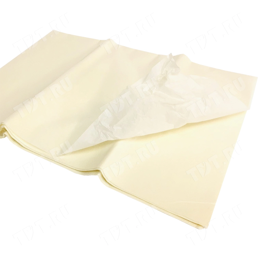Кремовая бумага тишью шириной 50 см, длиной 66 см, плотностью 20 г/м² по 10 листов в упаковке. Шероховатая упаковочная бумага для оформления и украшения подарков.