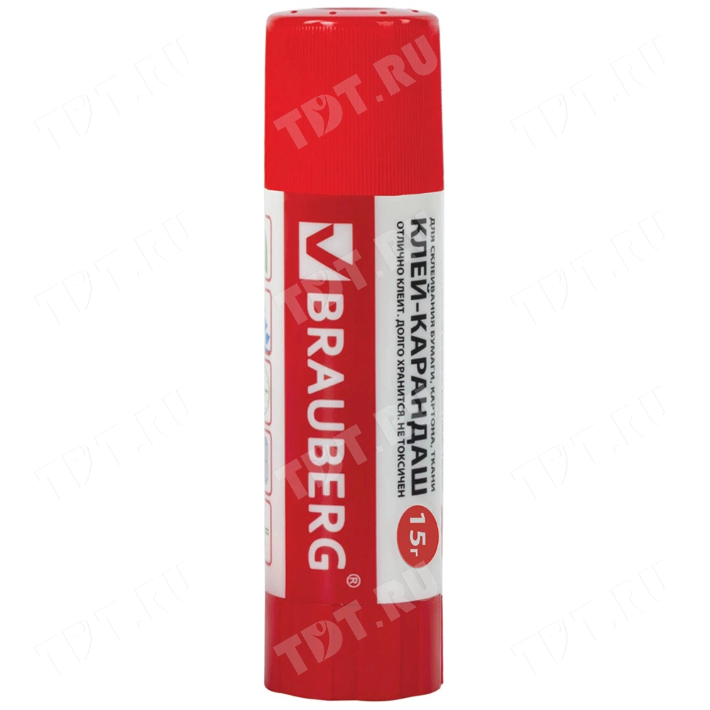 Клей-карандаш BRAUBERG, код производителя 220870, белого цвета, объемом 15 г. Производится в Китае.