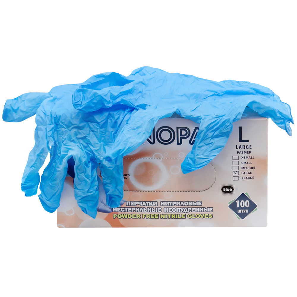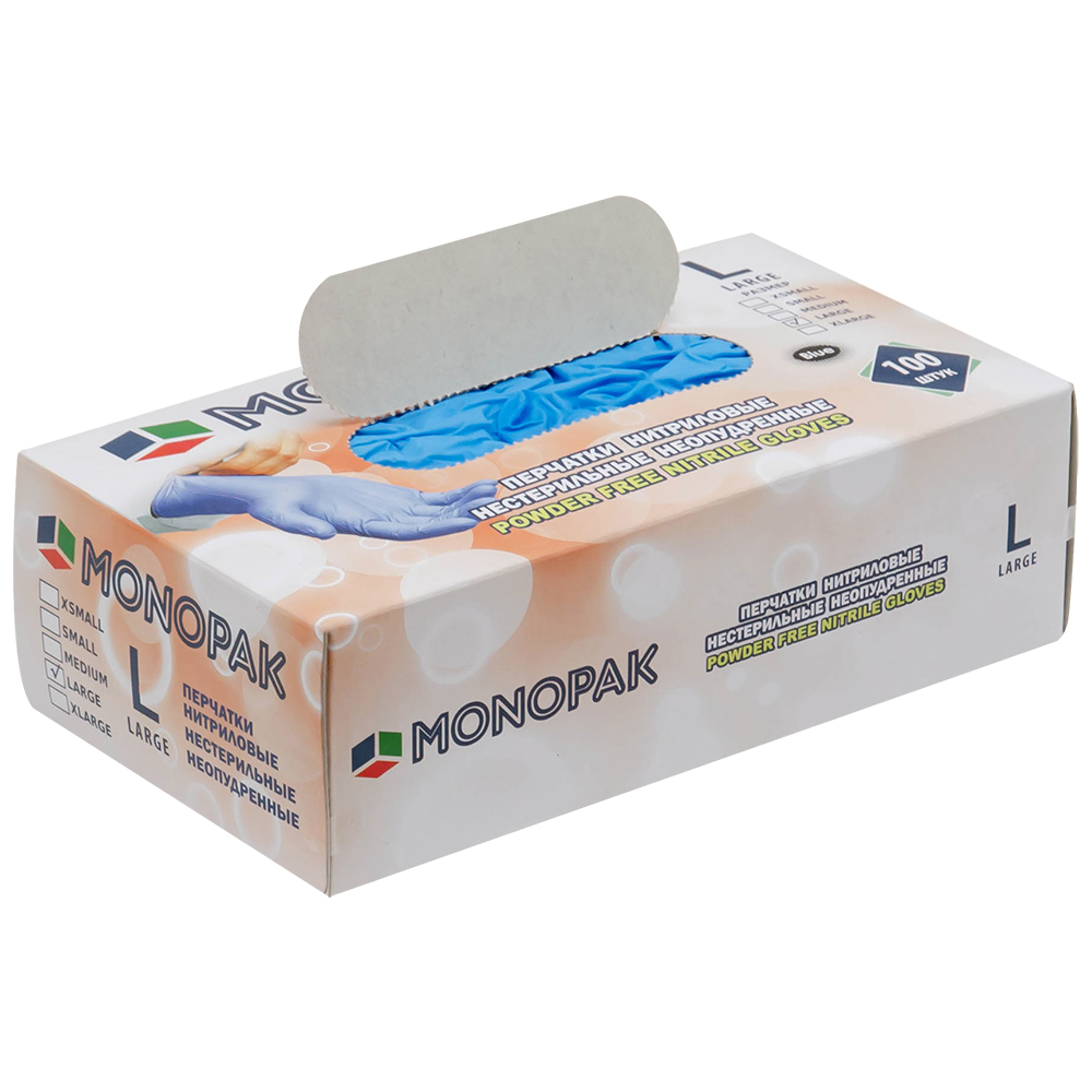 Перчатки нитриловые Monopak, голубые, размер L, 100 шт./уп.