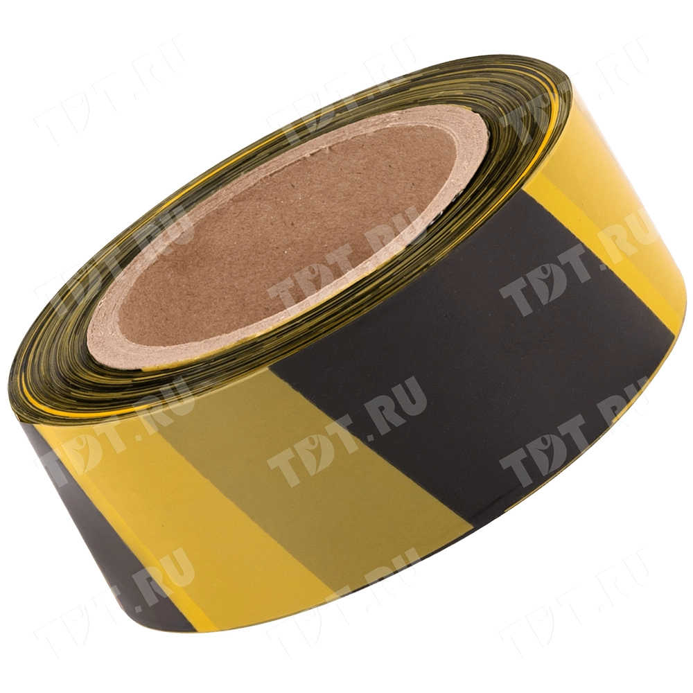 Бесклеевая сигнальная лента, желто-черного цвета, шириной 50 мм, толщиной 35 мкм, намоткой 200 мм. Материал – полиэтилен высокого давления (ПВД). Производится в России.
