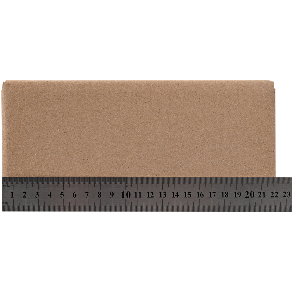 Короб «PROБизнес» №5-МК бурого цвета, длиной 220 мм, шириной 165 мм и высотой 100 мм. Изготовлен из трехслойного картона марки Т-22 В. Полезный объём — 3.63 л.