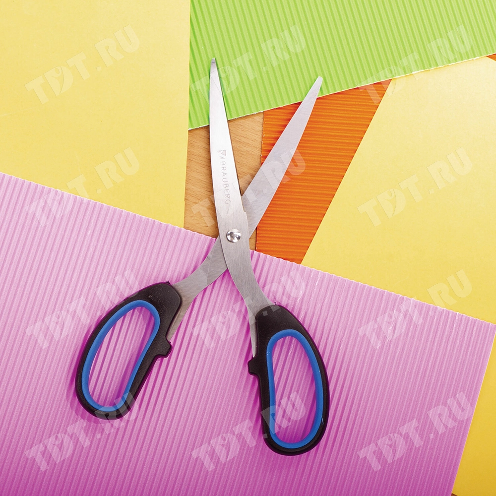 Ручки ножниц Brauberg «CLASSIC+» выполнены из мягкого пластика с резиновыми вставками.
