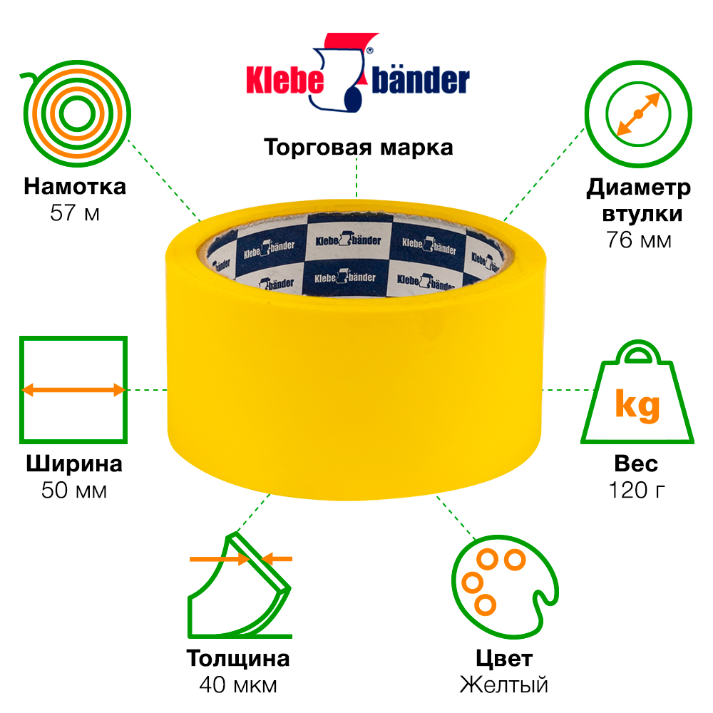 Клейкая лента желтая Klebebander, 50мм*57м*40мкм