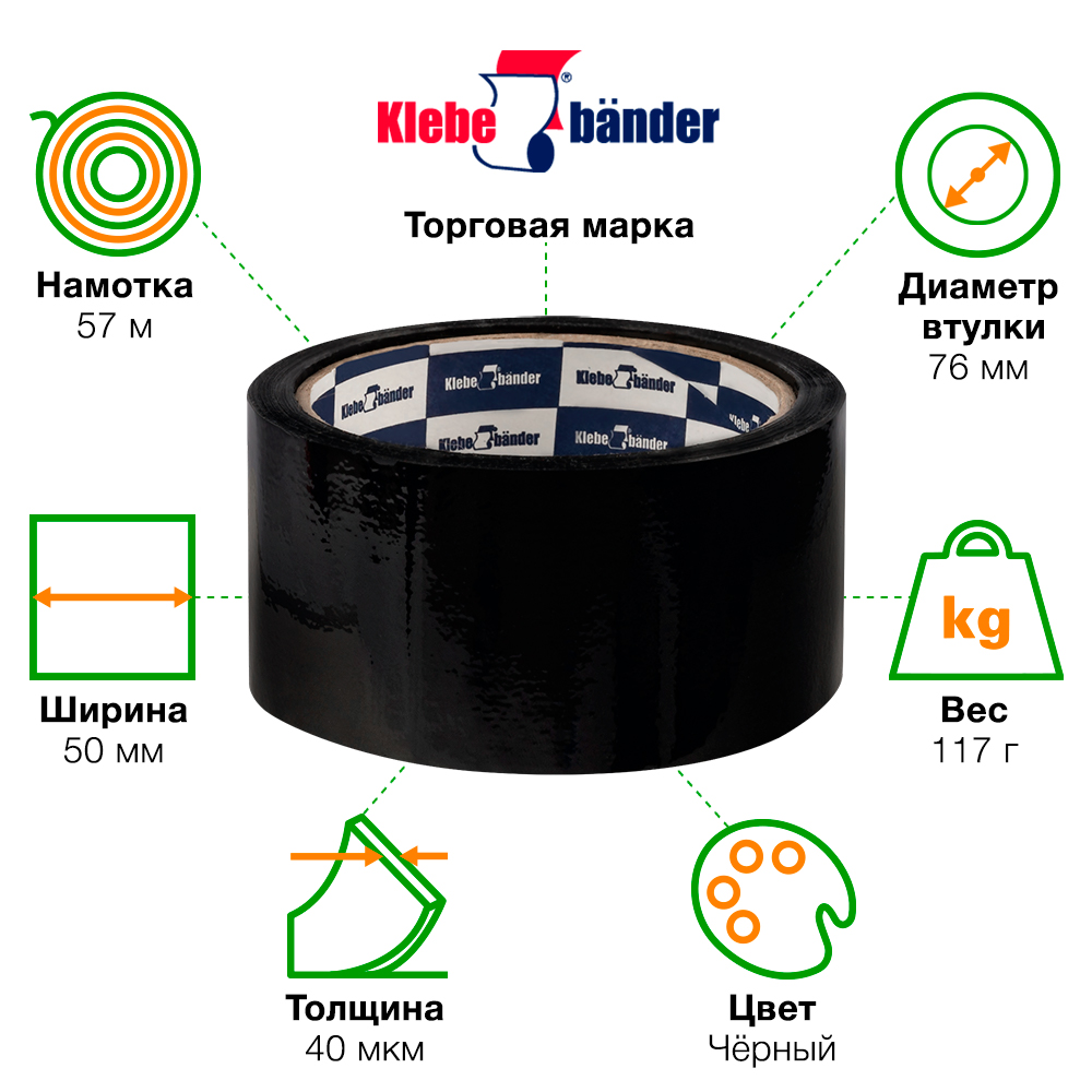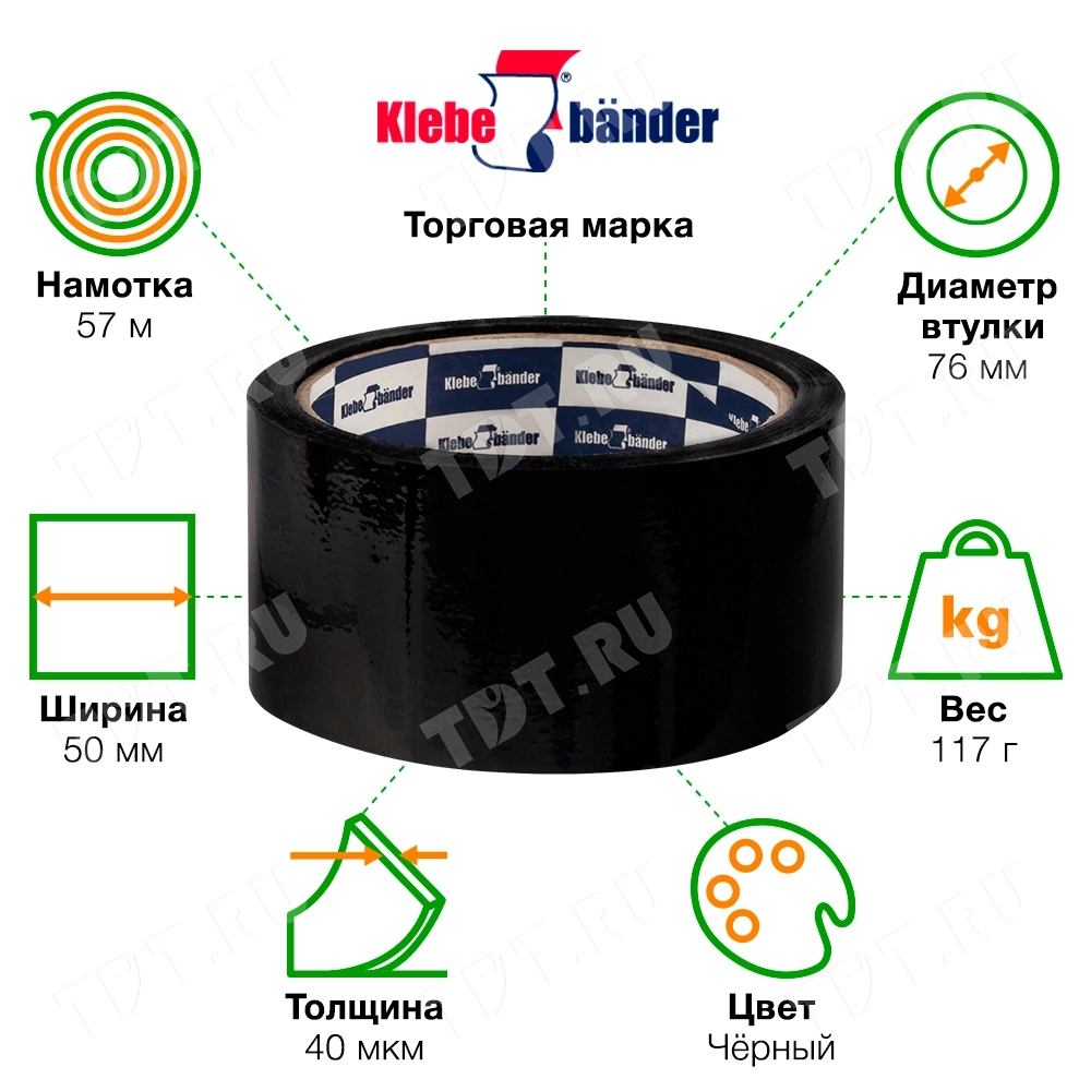 Клейкая лента черного цвета 50 мм, намоткой 57 метров для ручной упаковки KLEBEBANDER.