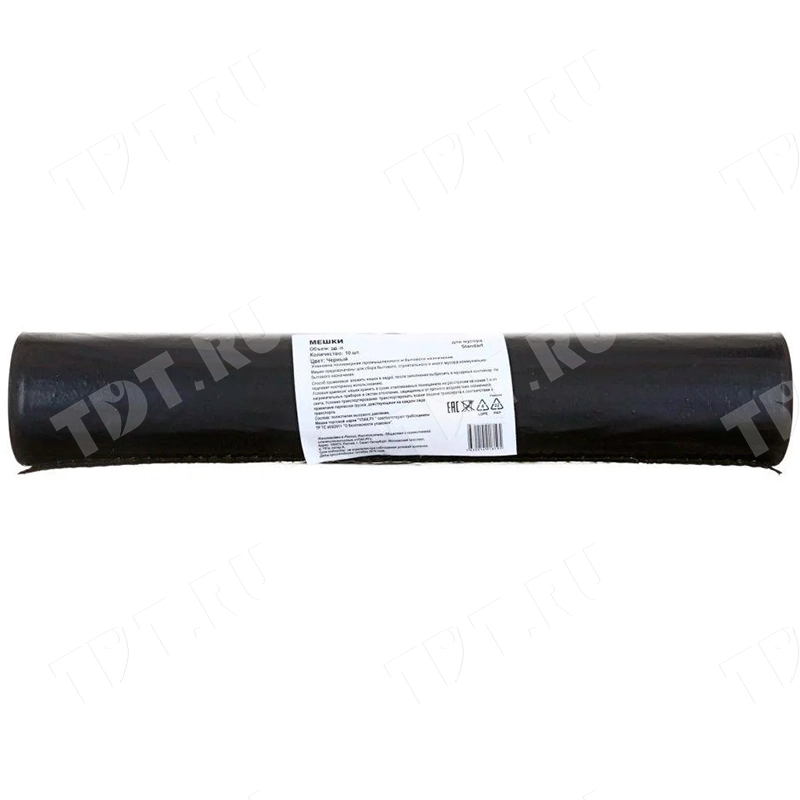 Мусорные строительные мешки для профессионального и бытового применения, особопрочные, черного цвета, объемом 120 л, длиной 103 см, шириной 65 см, толщиной 40 мкм, в упаковке по 9 штук. Изготовлены из полиэтилена высокого давления (ПВД). Производятся в России.