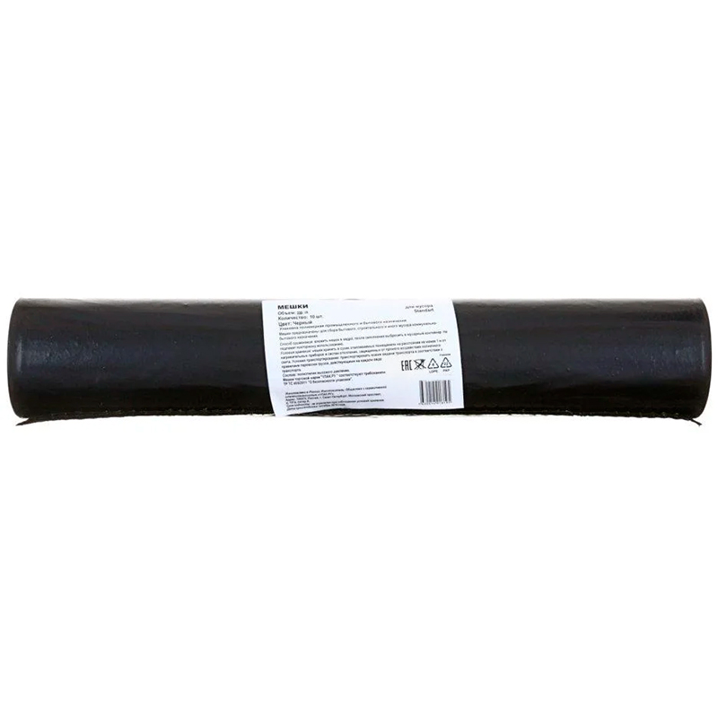 Мусорные строительные мешки для профессионального и бытового применения, особопрочные, черного цвета, объемом 220 л, длиной 130 см, шириной 90 см, толщиной 70 мкм, в упаковке по 10 штук. Изготовлены из полиэтилена высокого давления (ПВД). Производятся в России.