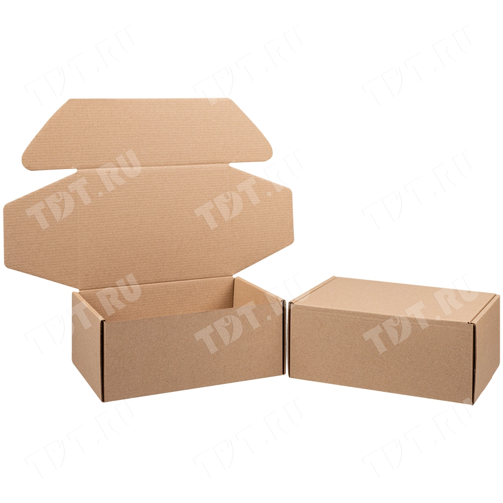 Короб №200 (премиум) бурого цвета, длиной 210 мм, шириной 150 мм и высотой 90 мм. Изготовлен из микрогофрокартона Е-22. Полезный объём — 2.83 л.