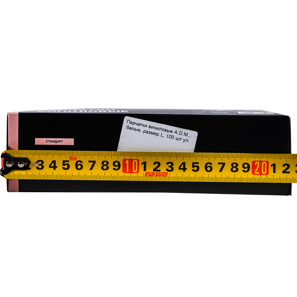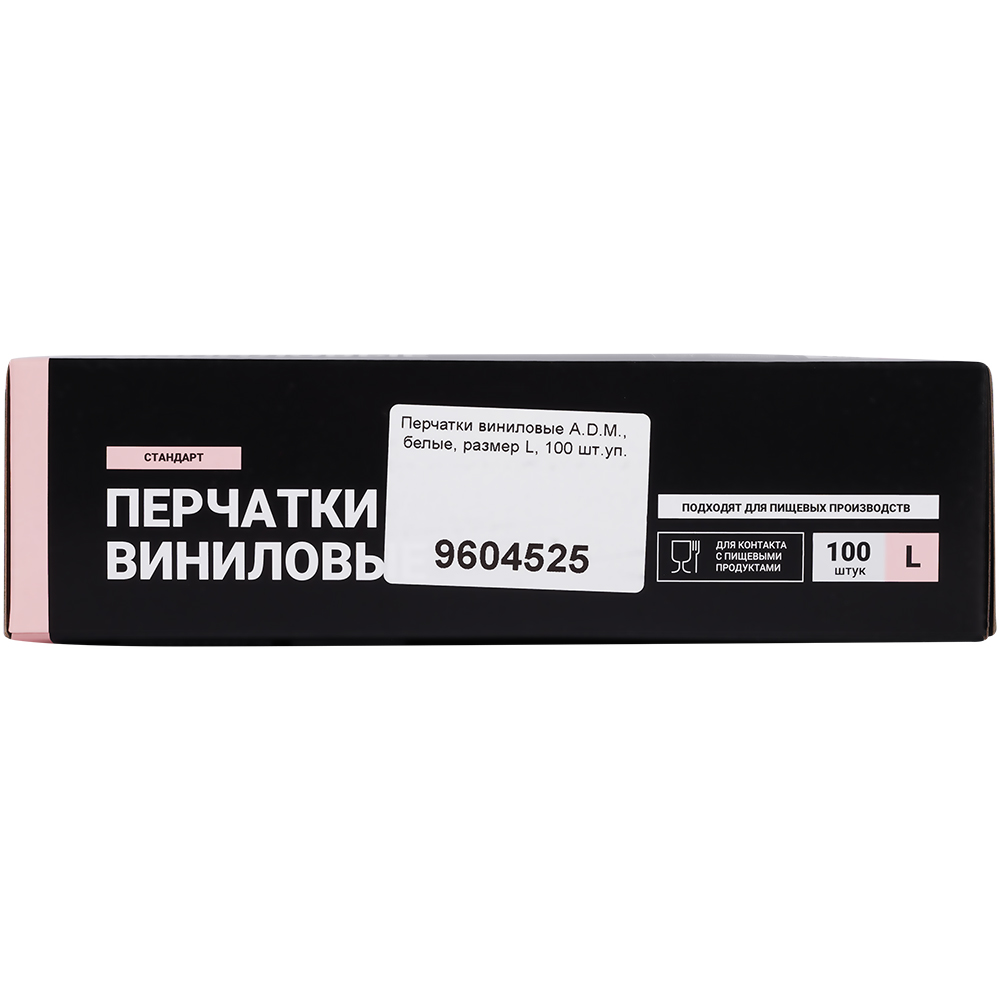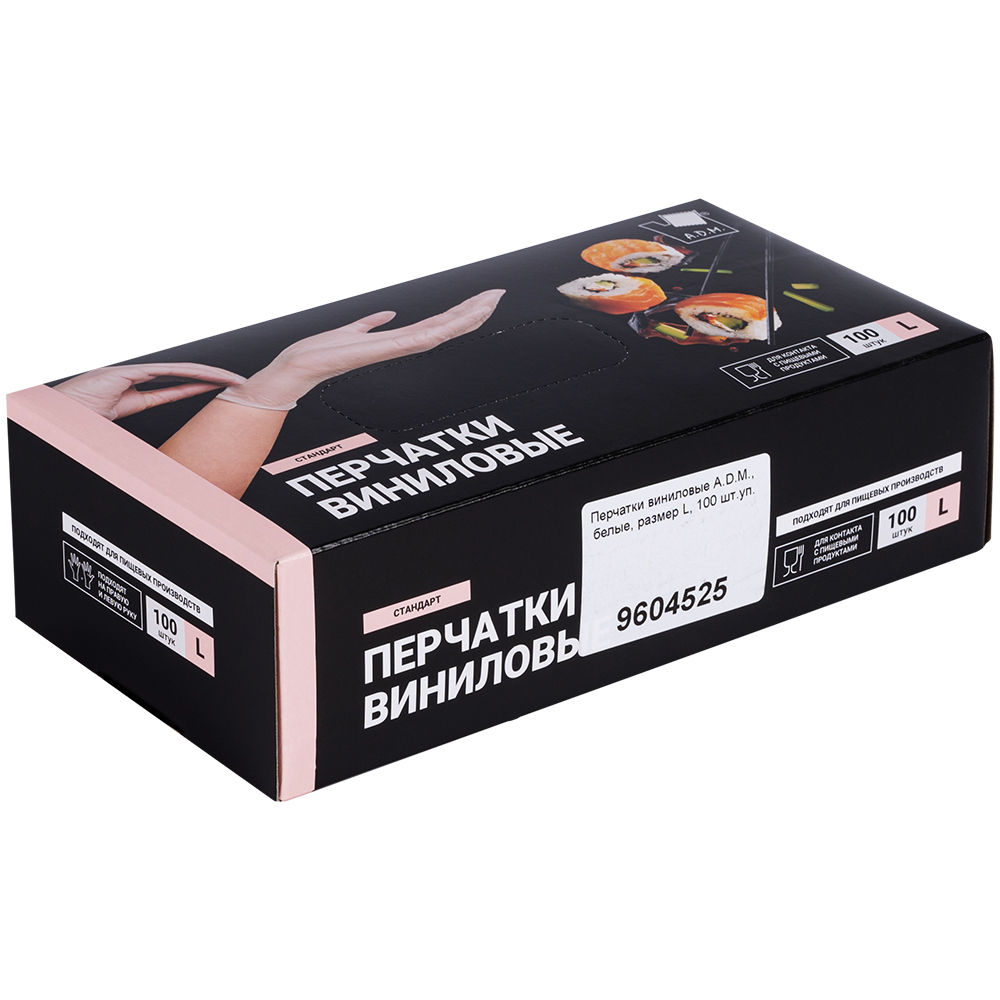 Перчатки виниловые A.D.M., белые, размер L, 100 шт./уп.