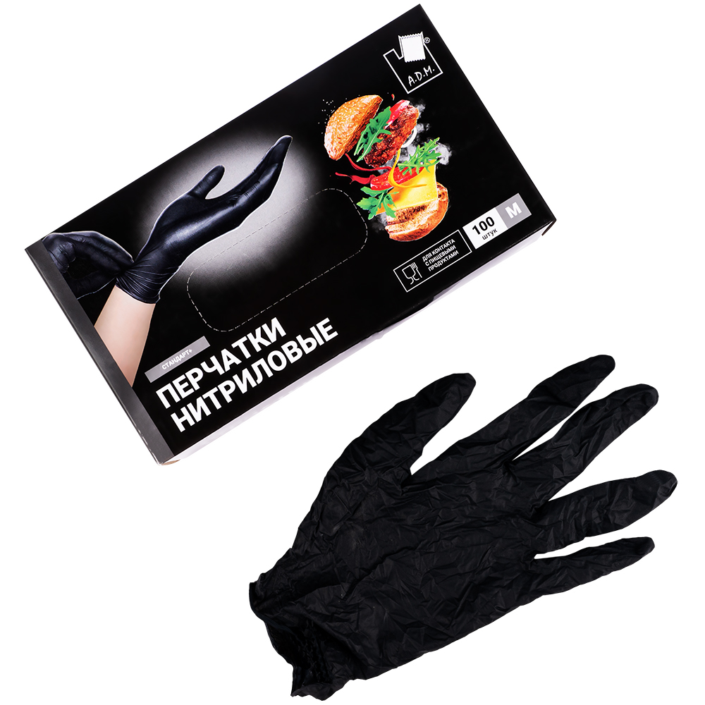 Перчатки нитриловые A.D.M., черные, размер M, 100 шт./уп.