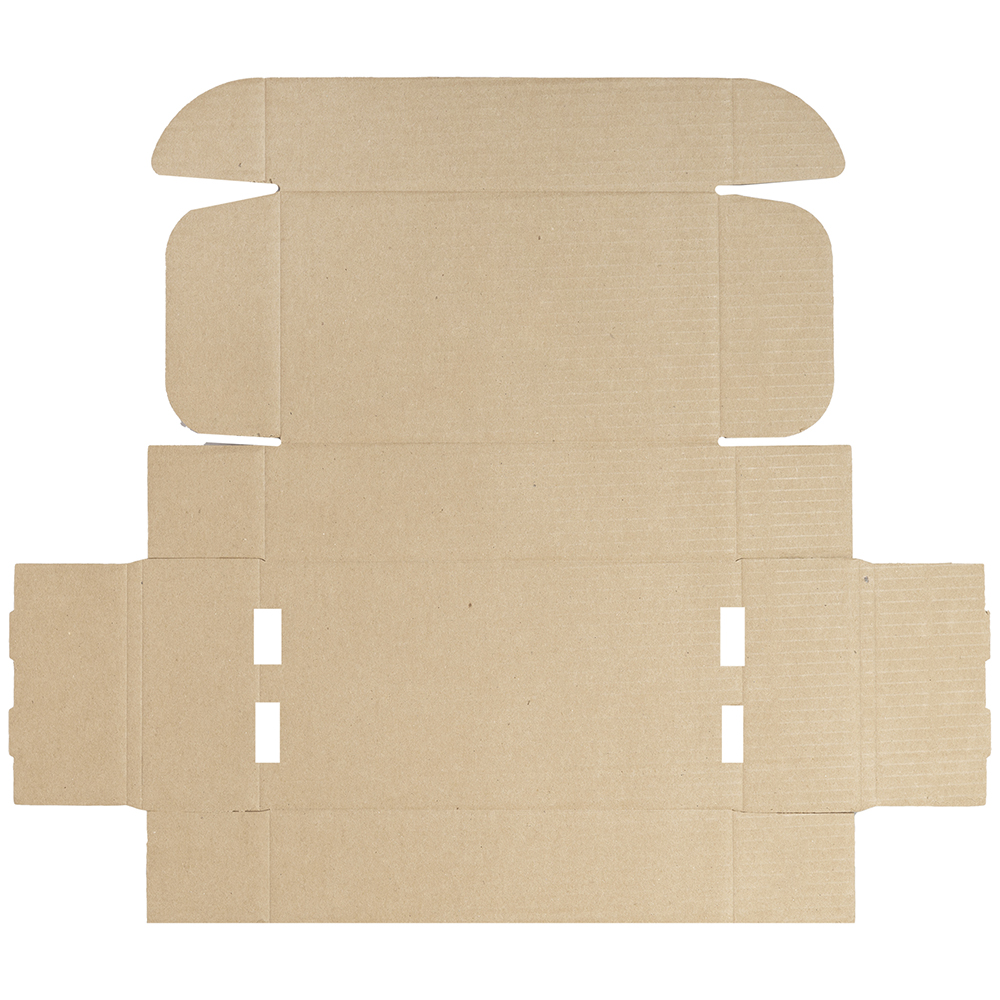 Короб КС-220 бурого цвета, длиной 260 мм, шириной 135 мм и высотой 50 мм. Изготовлен из трёхслойного гофрокартона Т-23 В (целлюлоза). Полезный объём — 1.8 л.