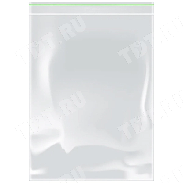 Пакеты Zip-Lock, прозрачного цвета с зеленой полосой, длиной 250 мм, шириной 200 мм, толщиной 23-26 мкм, в упаковке по 100 штук. Материал – полиэтилен высокого давления (ПВД). Производятся в Китае.
