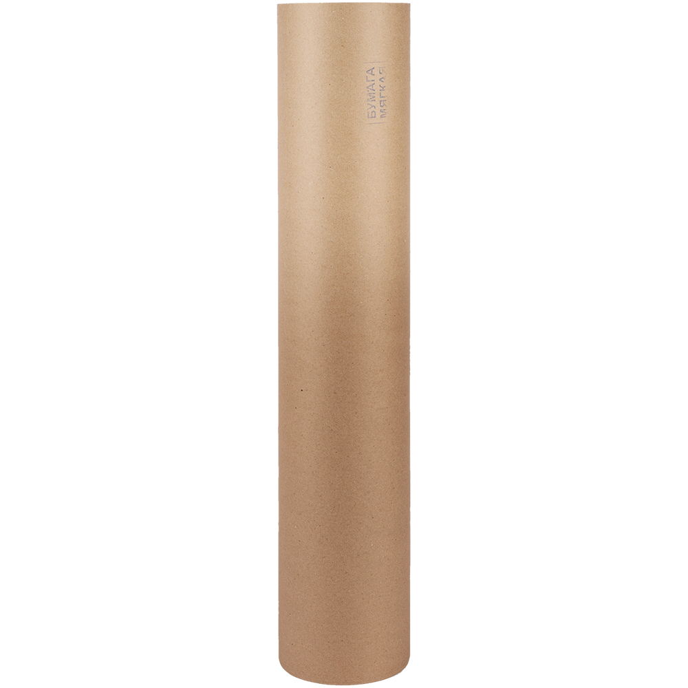 Оберточная крафт бумага в рулоне бурого цвета, шириной 84 см, намоткой 150 м, плотностью 80 г/м². Экологически чистый упаковочный материал из вторсырья. Производится в России.