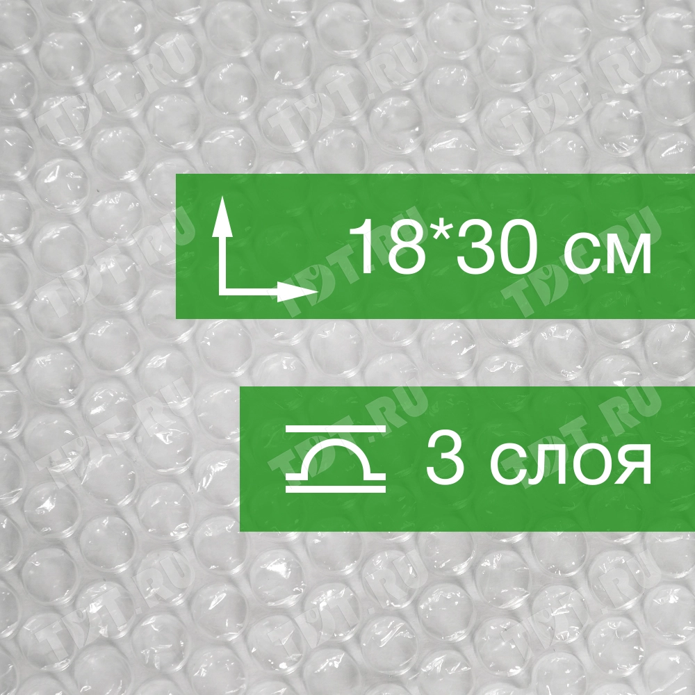 Прозрачный трехслойный воздушно-пузырчатый пакет Бета-Куверт, длиной 18 см, шириной 30 см, диаметром пузырька 10 мм, плотностью 60 г/м². Изготовлен из полиэтилена. Производится в России.
