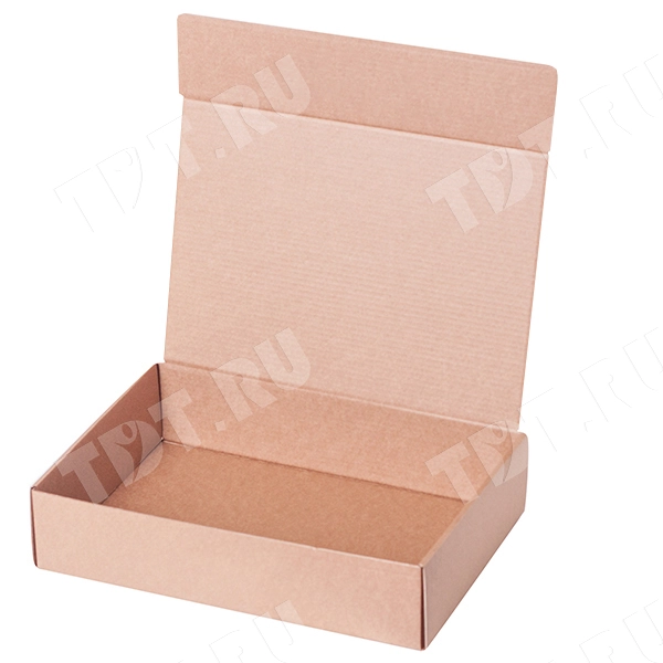 Короб №400 бурого цвета, длиной 205 мм, шириной 160 мм и высотой 60 мм. Изготовлен из трехслойного гофрокартона Т-23. Полезный объём — 1.97 л.