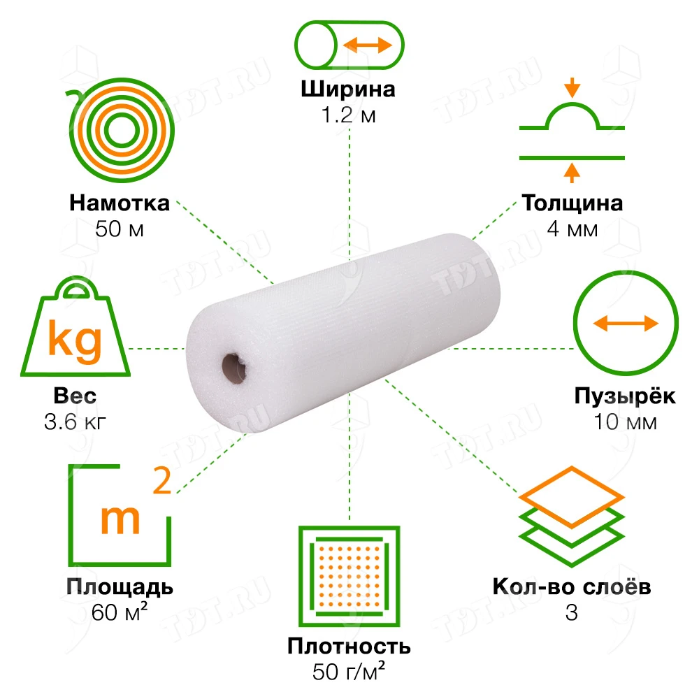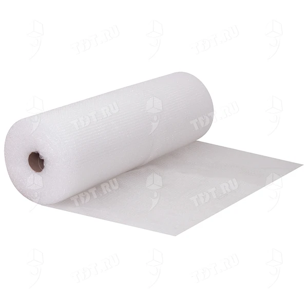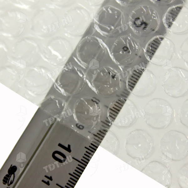 Прозрачная трёхслойная воздушно-пузырчатая пленка «Оптима», намоткой 50 м, шириной рулона 1.2 м, диаметром пузырька 10 мм, плотностью 50 г/м². Изготовлена из полиэтилена. Производится в России.