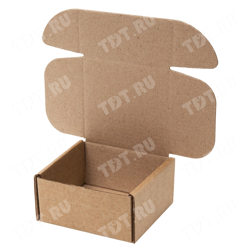 Короб №119 бурого цвета, длиной 95 мм, шириной 95 мм и высотой 50 мм. Изготовлен из микрогофрокартона Е-22. Полезный объём — 0.45 л.