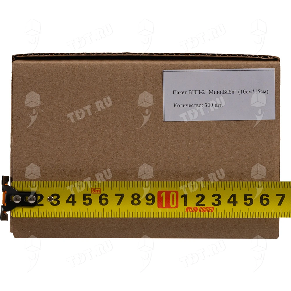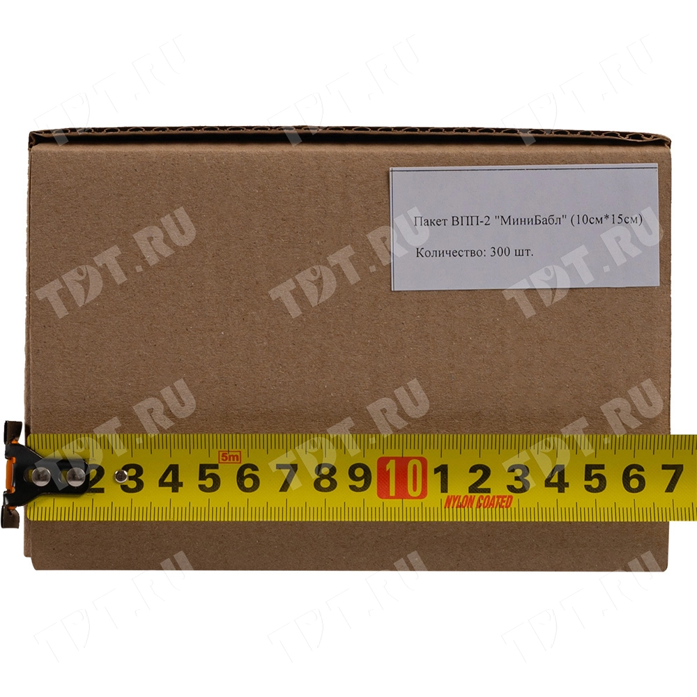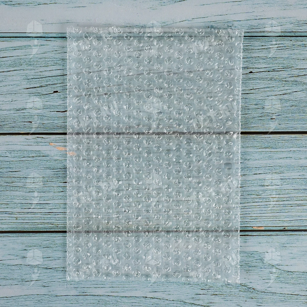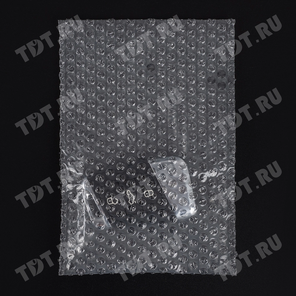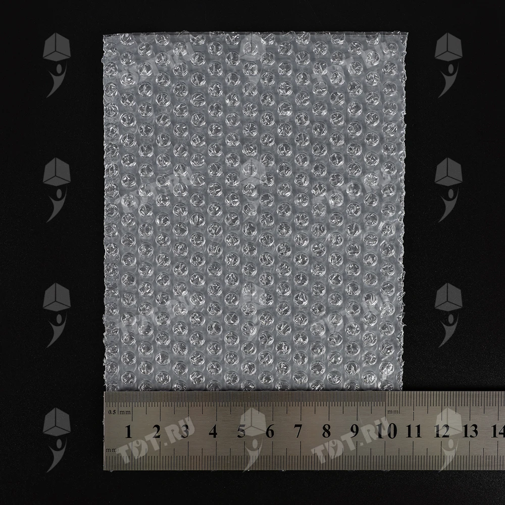 Прозрачные двухслойные воздушно-пузырчатые пакеты из пленки «МиниБабл», длиной 10 см, шириной 15 см, диаметром пузырька 5 мм, плотностью 25 г/м², открытие по узкой стороне. В коробке 300 пакетов. Изготовлен из полиэтилена. Производится в России.