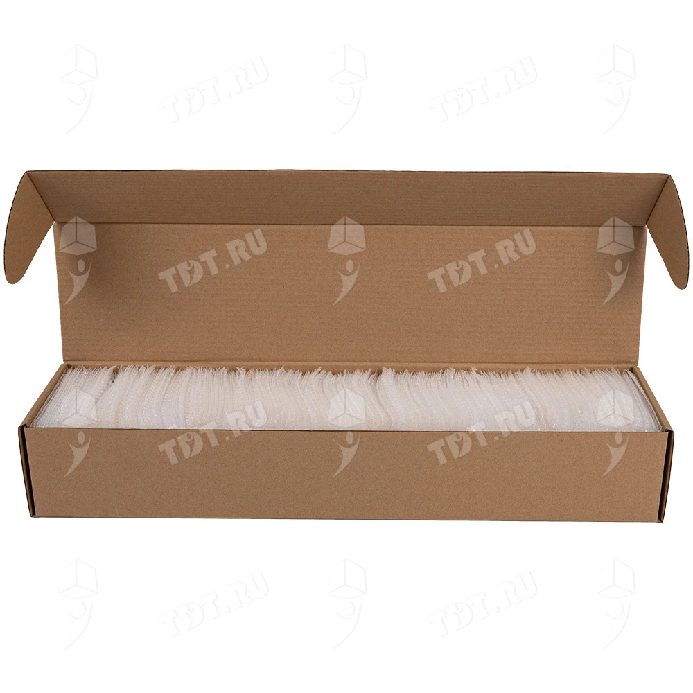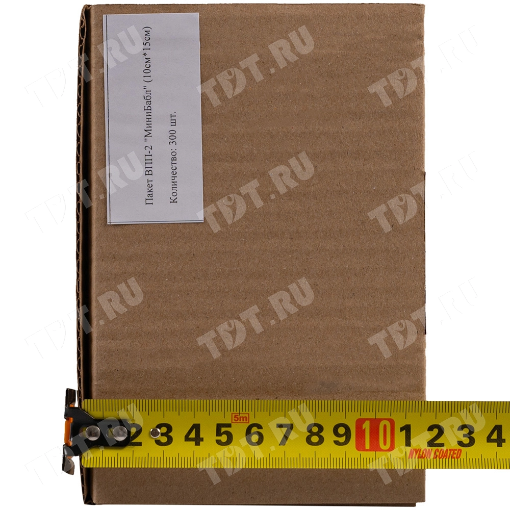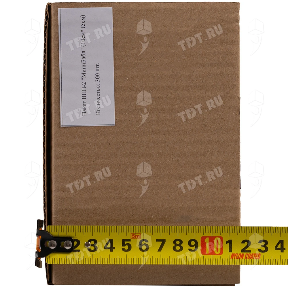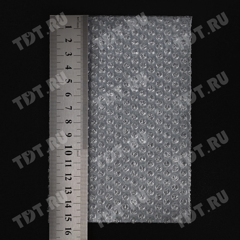 Прозрачные двухслойные воздушно-пузырчатые пакеты из пленки «МиниБабл», длиной 10 см, шириной 15 см, диаметром пузырька 5 мм, плотностью 25 г/м², открытие по узкой стороне. В коробке 300 пакетов. Изготовлен из полиэтилена. Производится в России.